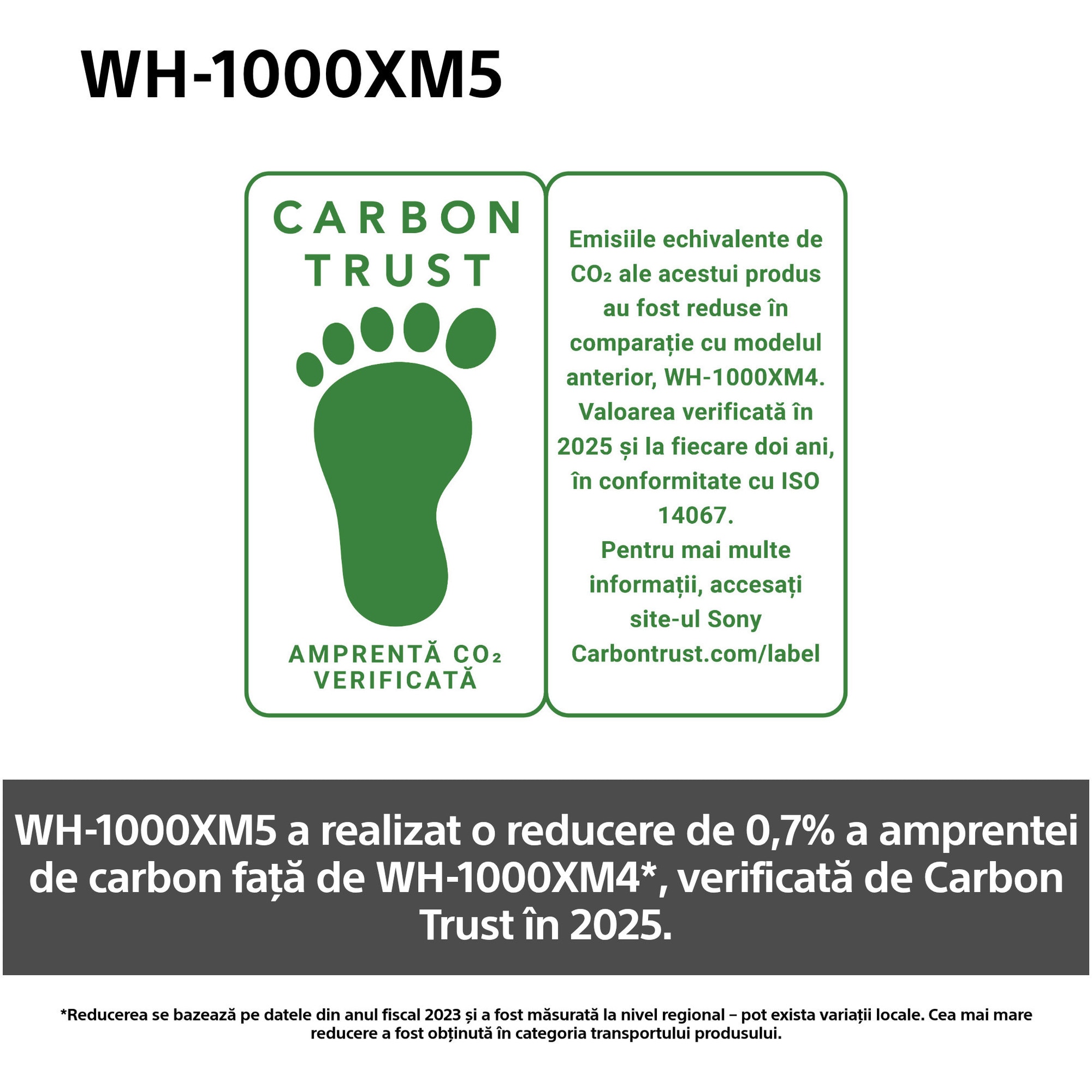 Nu exista plastic in ambalajul WH-1000XM5, creat pentru toxicitate redusa pe baza filozofiei „fabricatie pentru reciclare’, responsabila din perspectiva sociala. Cutia produsului este realizata din materiale reciclate si durabile dezvoltate special pentru Sony. WH-1000XM5 incorporeaza materiale plastice reciclate din piese de automobile.