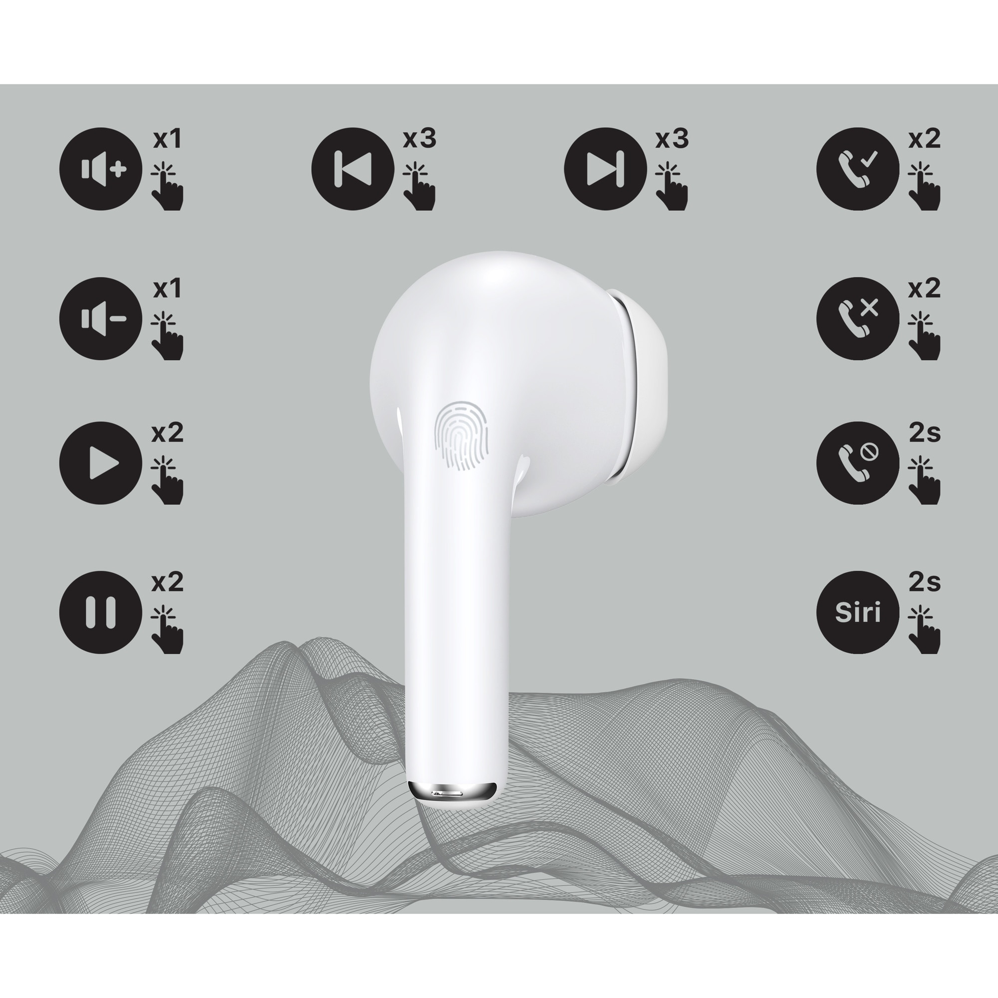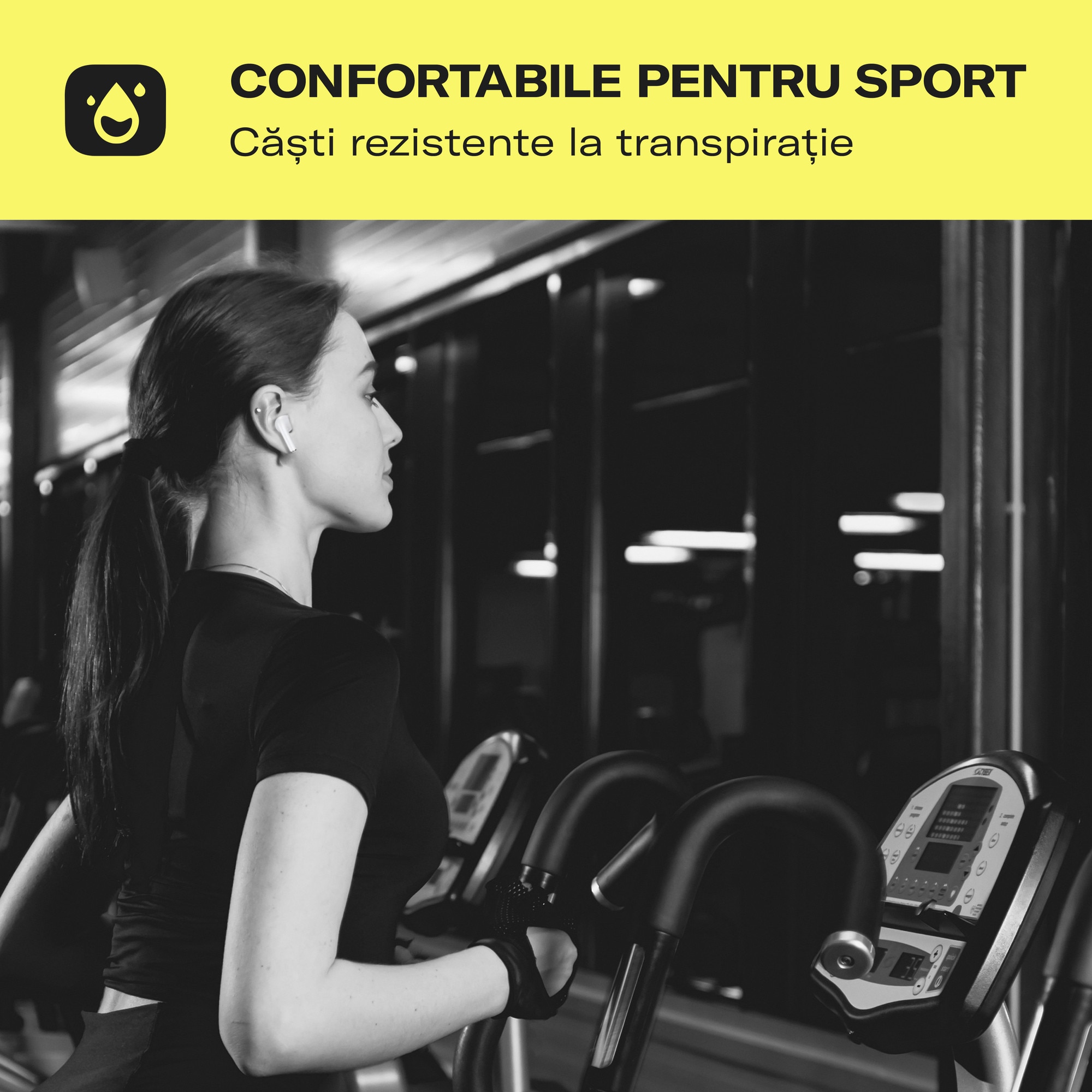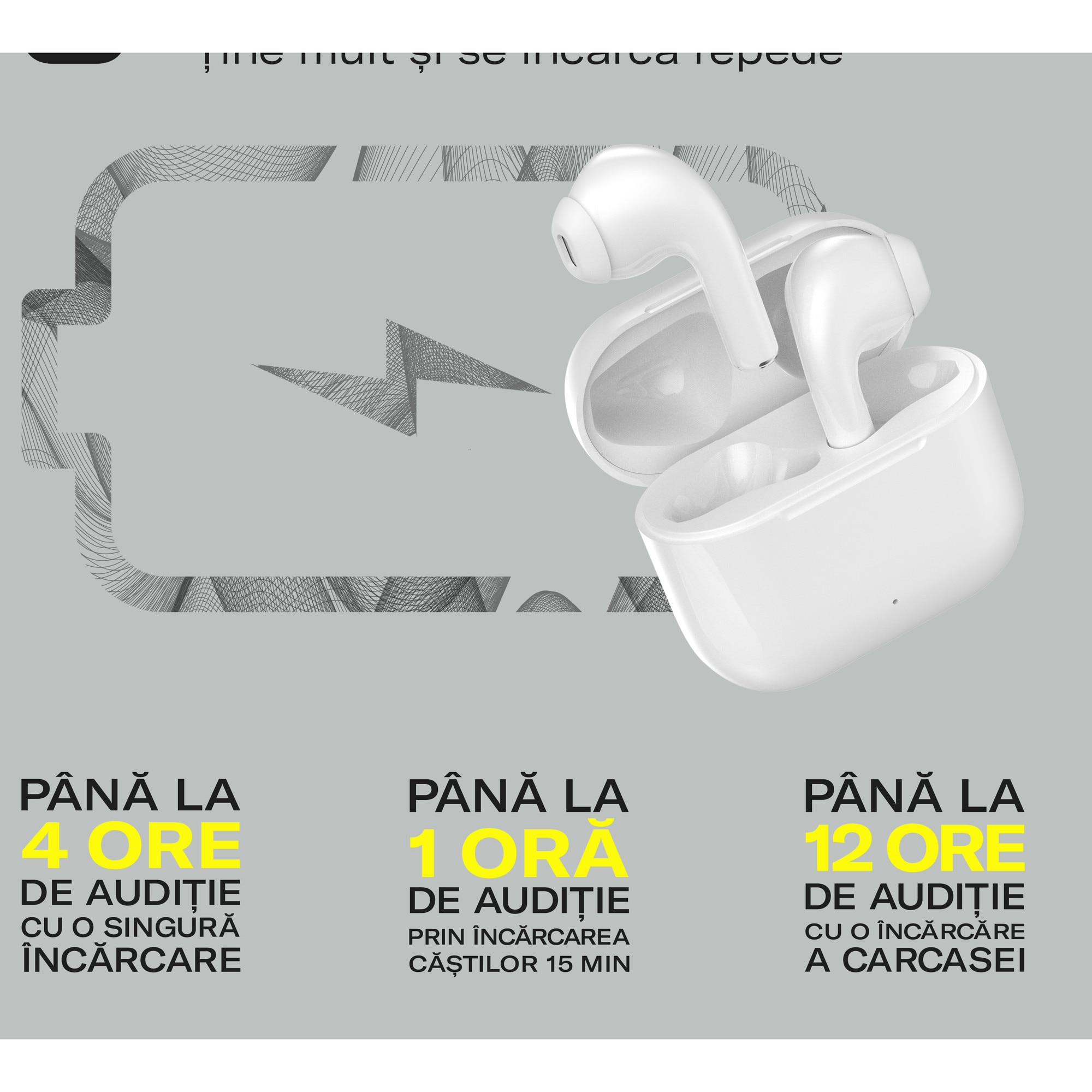 Casti wireless bluetooth, Zoopie®NEOplus, audio, earbuds in ear, fara fir, sport, alergare, cu microfon, casti true wireless, pentru telefon, control touch, asistent vocal, universale, Bluetooth 5.3, alb