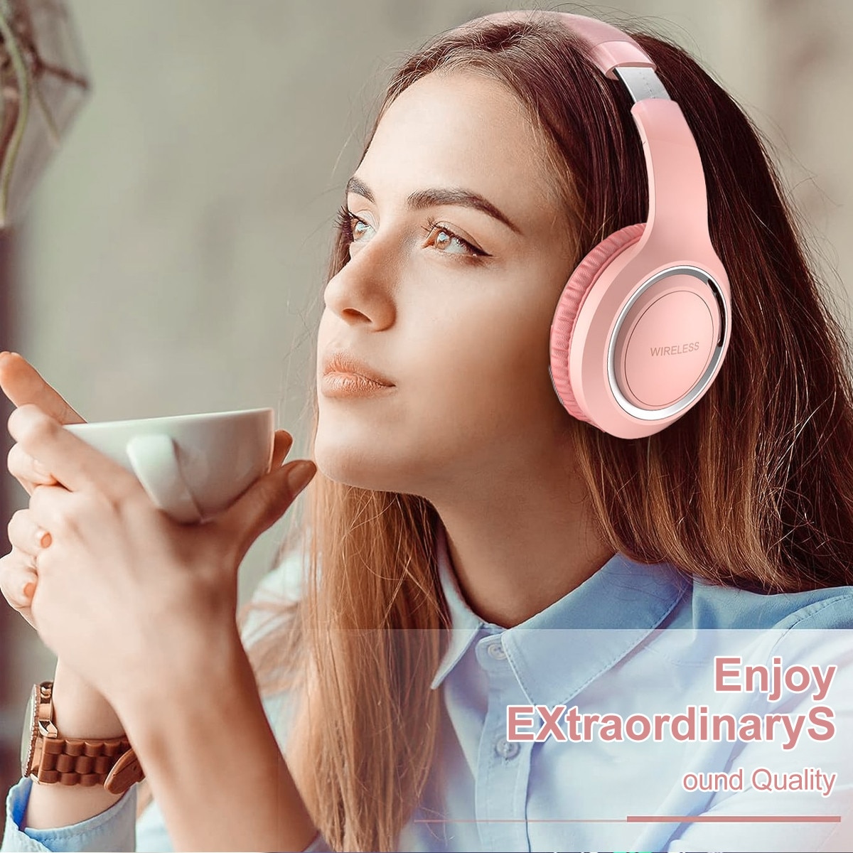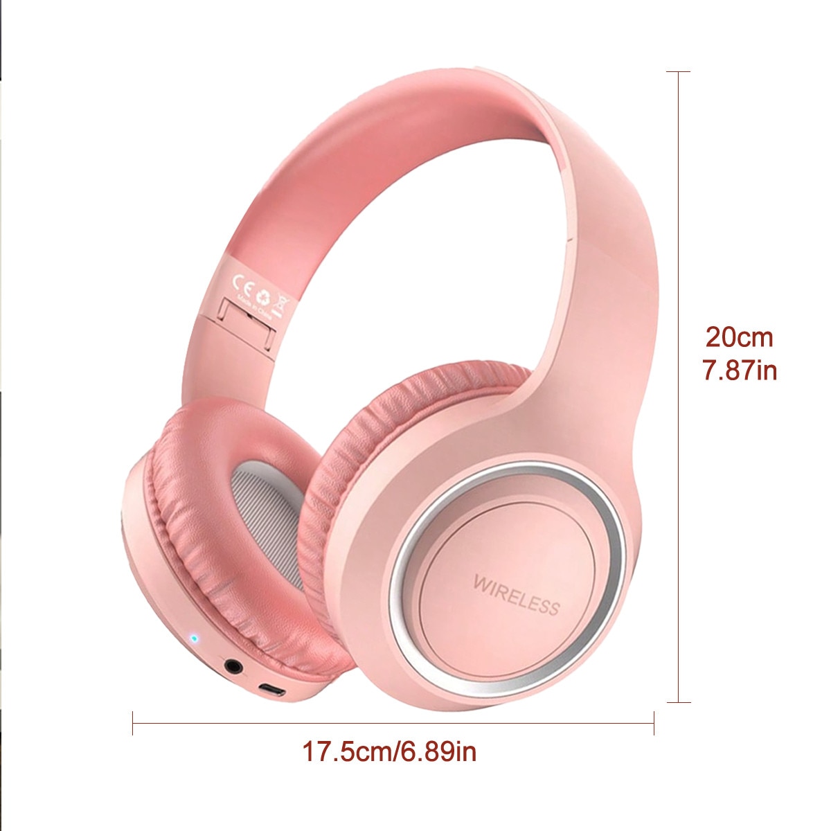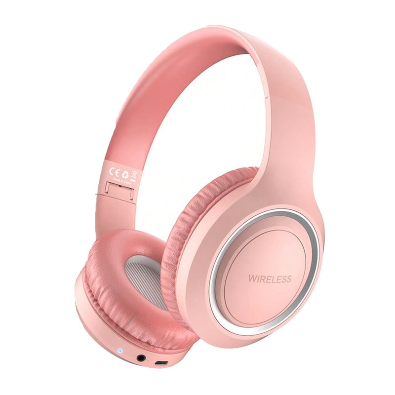Casti Wireless Over-Ear Pliabile, Casti Bluetooth Pliabile pentru Fete si Copii, 3 Moduri: Wireless, Fir (Aux 3.5mm) MP3 (Card TF), Sunet Stereo Hi-Fi cu Bas Puternic, Microfon Integrat, pentru Muzica, Scoala, Calatorii, Roz