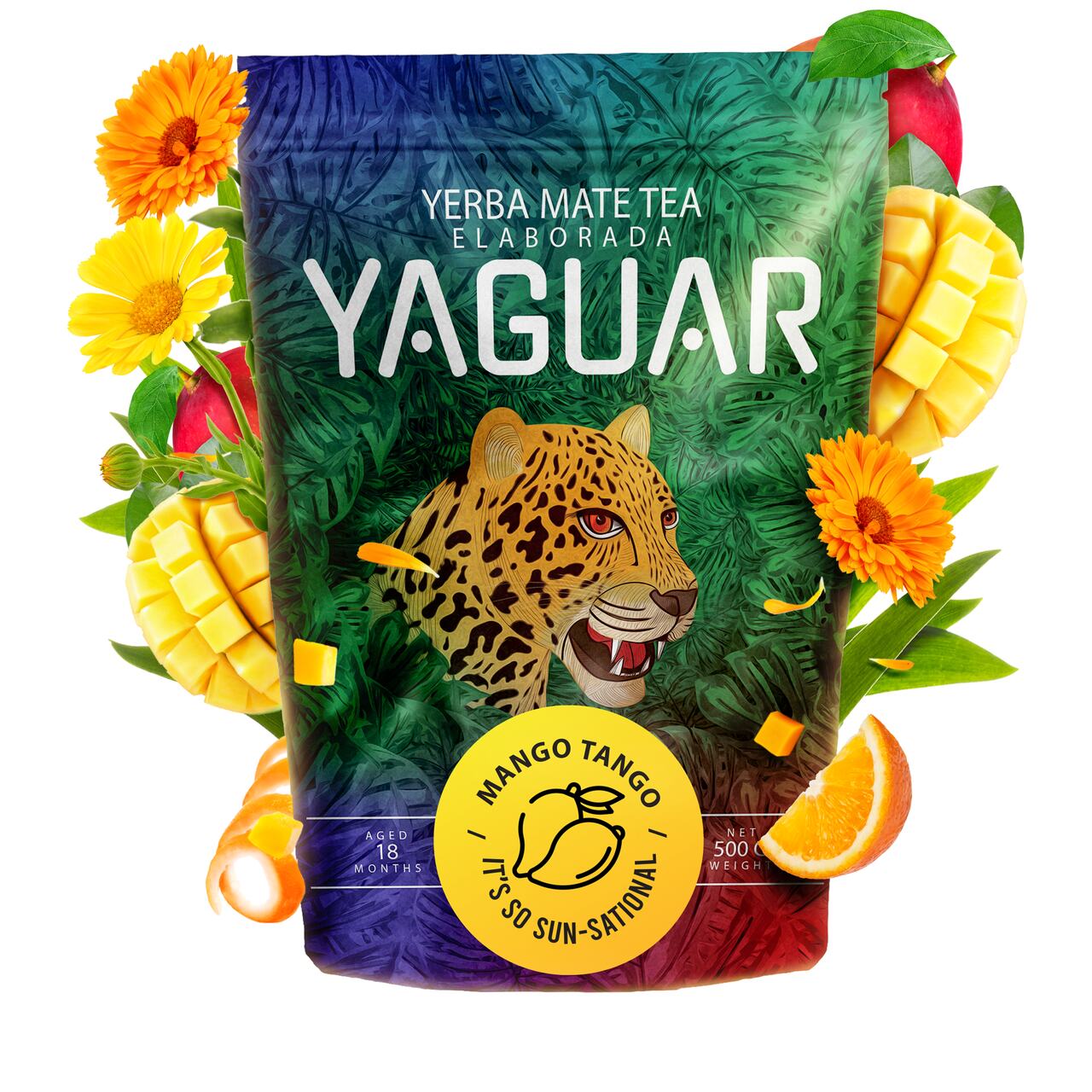 Ceai Yerba Mate Set, Yaguar Mango Tango, Uscat la Aer, Fara Fum, Usor, 500g, Cana Coconut 400 ml, Bombilla