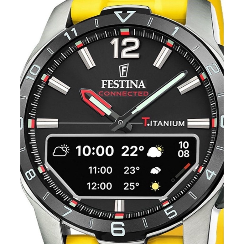 Ceas barbati Festina Connected, titan, negru, curea silicon galben, 44mm, rezistent la apa 30m