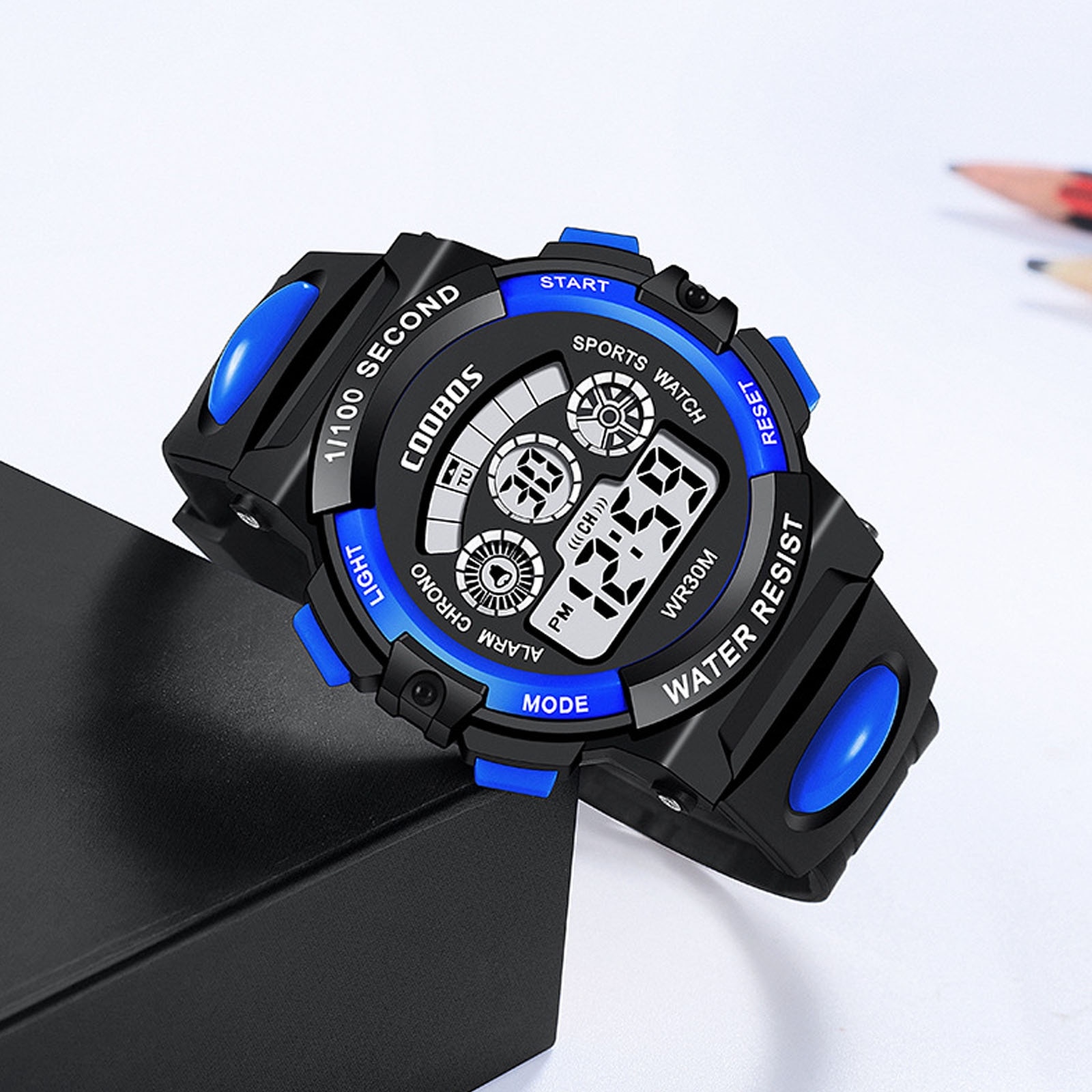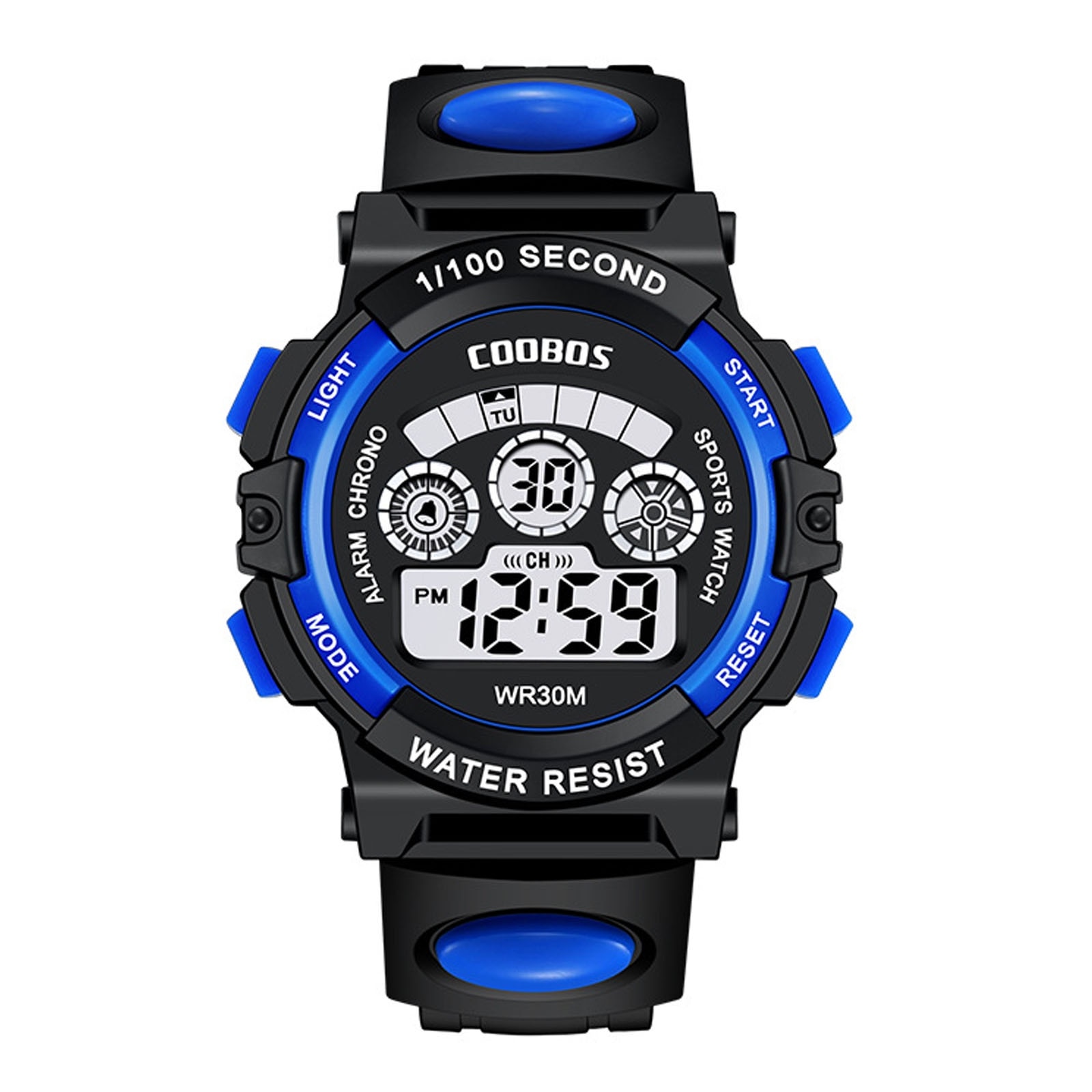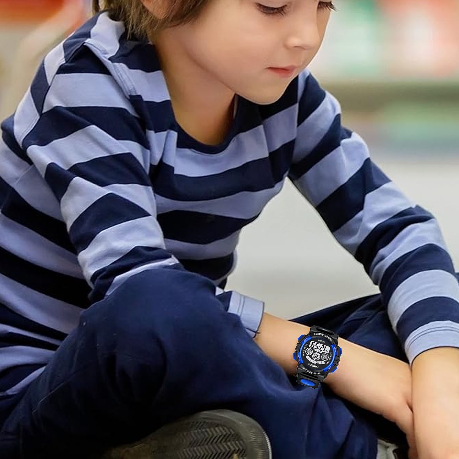 Ceas copii, SINBINTA, Ceas copii de mana, Afisaj electronic, Iluminare cadran, Rezistent la apa, Cu functii de cronometru, Alarma si calendar, Curea confortabila si usor reglabila, ABS, Diametru 37.5mm, Albastru