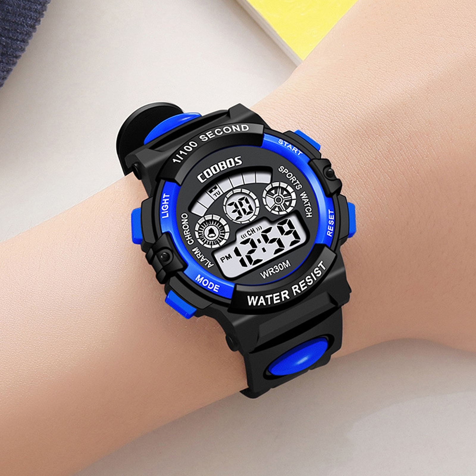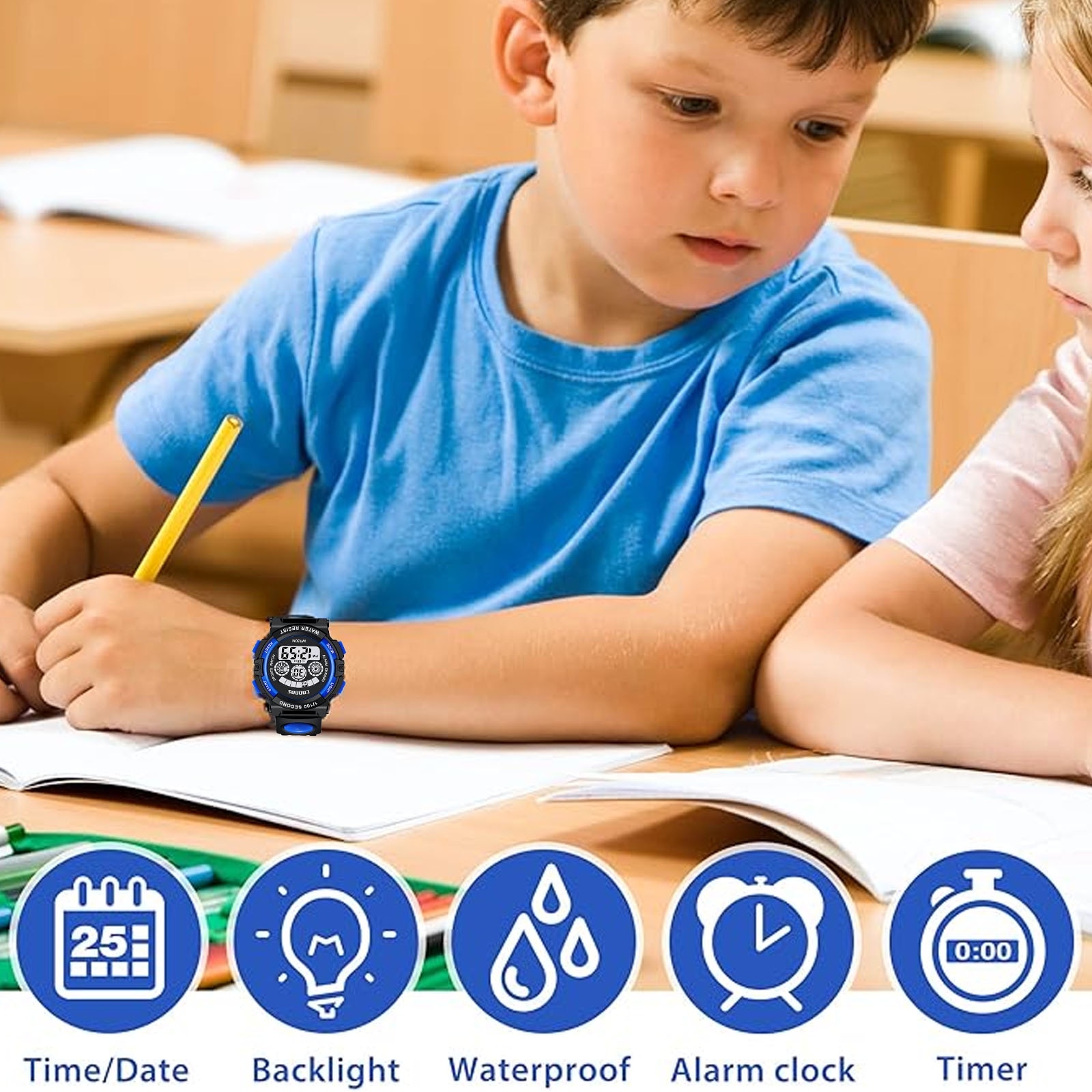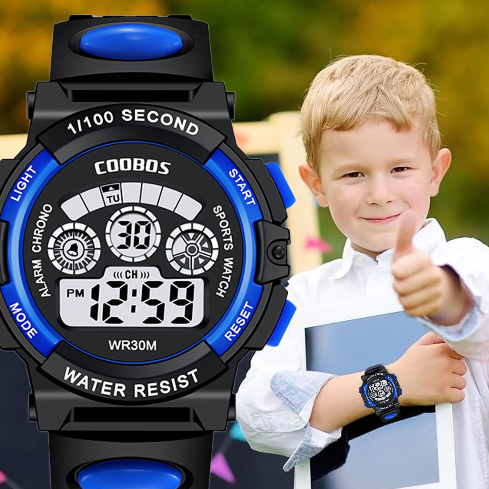 Ceas copii, SINBINTA, Ceas copii de mana, Afisaj electronic, Iluminare cadran, Rezistent la apa, Cu functii de cronometru, Alarma si calendar, Curea confortabila si usor reglabila, ABS, Diametru 37.5mm, Albastru