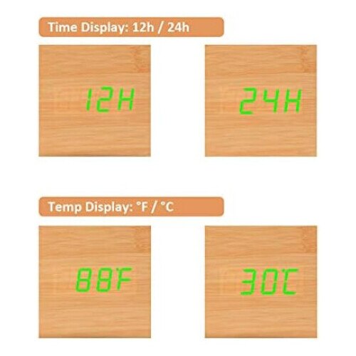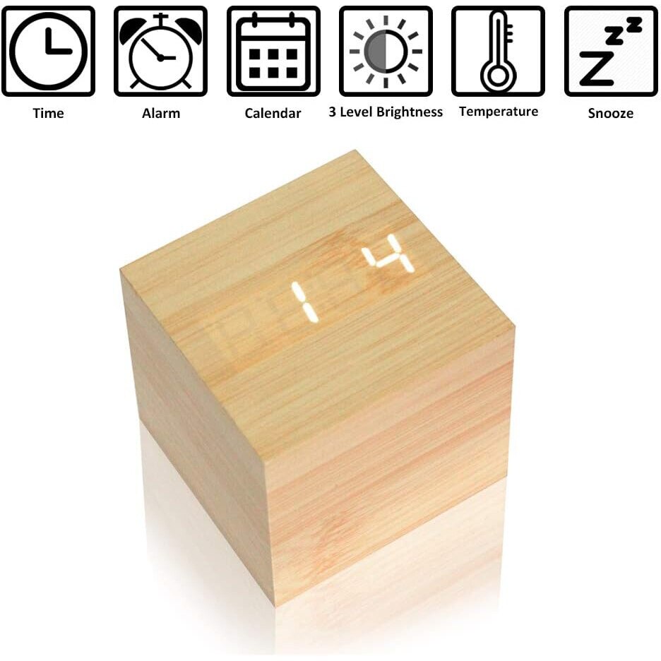 Ceas de masa digital Enforose din bambus, alarma multipla, luminozitate ajustabila, 10x15x5cm