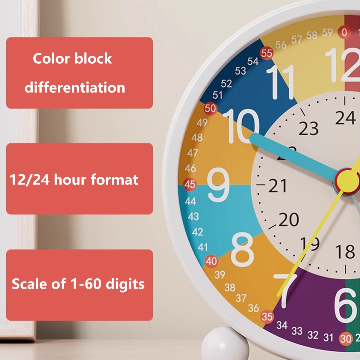 Ceas desteptator analogic pentru copii, design colorat, functie de lumina de noapte, functie snooze, alimentat cu baterii