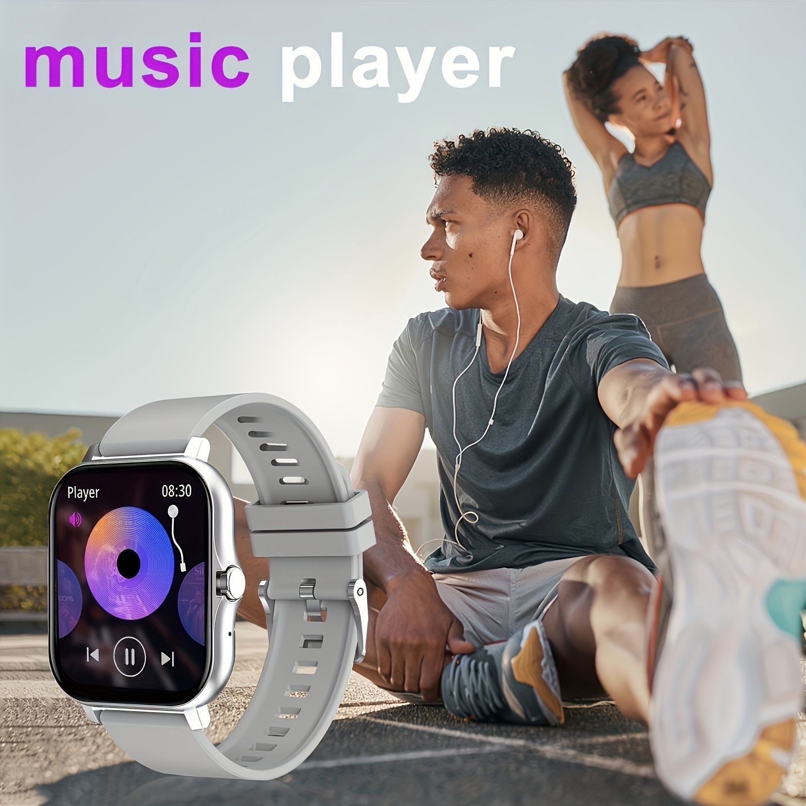 Ceas inteligent cu ecran tactil complet cu tracker fitness, notificare de apel/mesaj, pentru telefoane mobile Android IOS, cadou de ziua de nastere pentru barbati si femei, argintiu