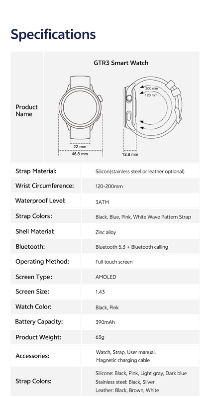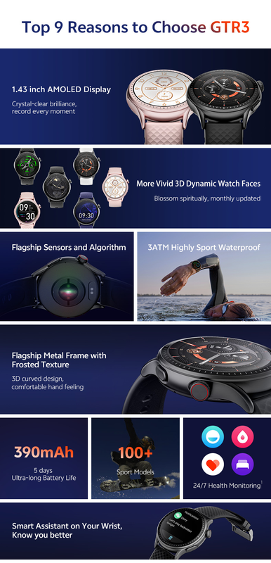 Ceas inteligent GTR3, monitorizare ritm cardiac, 3ATM rezistent la apa
