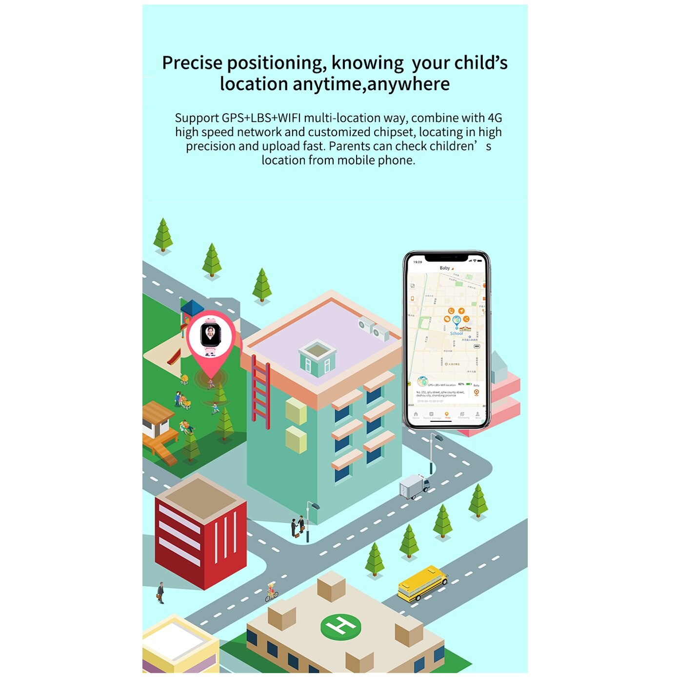 Ceas inteligent pentru copii, STELS, C1, 4G, Cartela SIM si camera, Urmarire GPS+LBS, Wi-Fi, Rezistent la apa, Roz