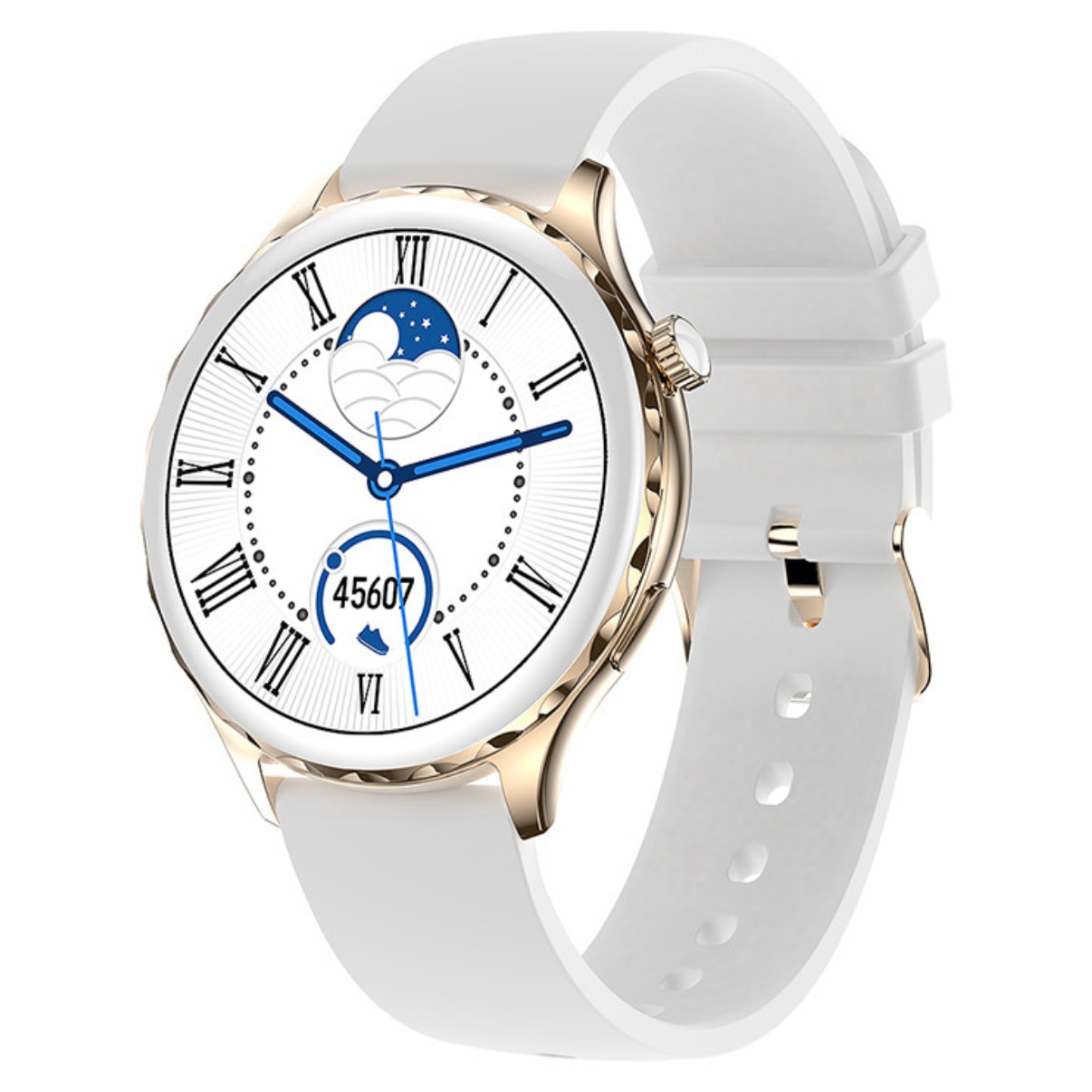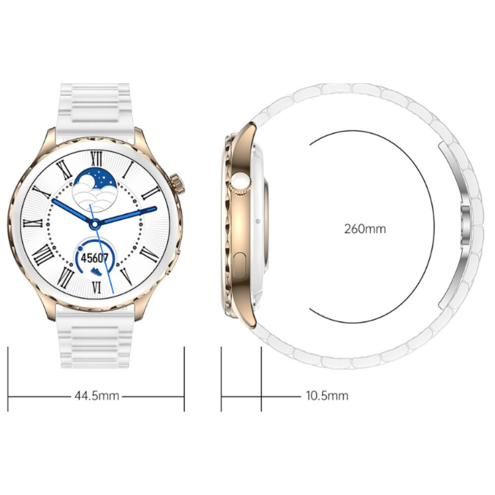 Ceas Smartwatch dama AK43, Multi-Sport, Bluetooth Call, Memento inteligent, Selfie la distanta, Notificari aplicatii, Analiza somnului, Frecventa cardiaca, Tensiune, Rezistent la apa IP67, Ecran IPS LCD 1,32 inch, compatibil IOS si Android, Silicon Alb