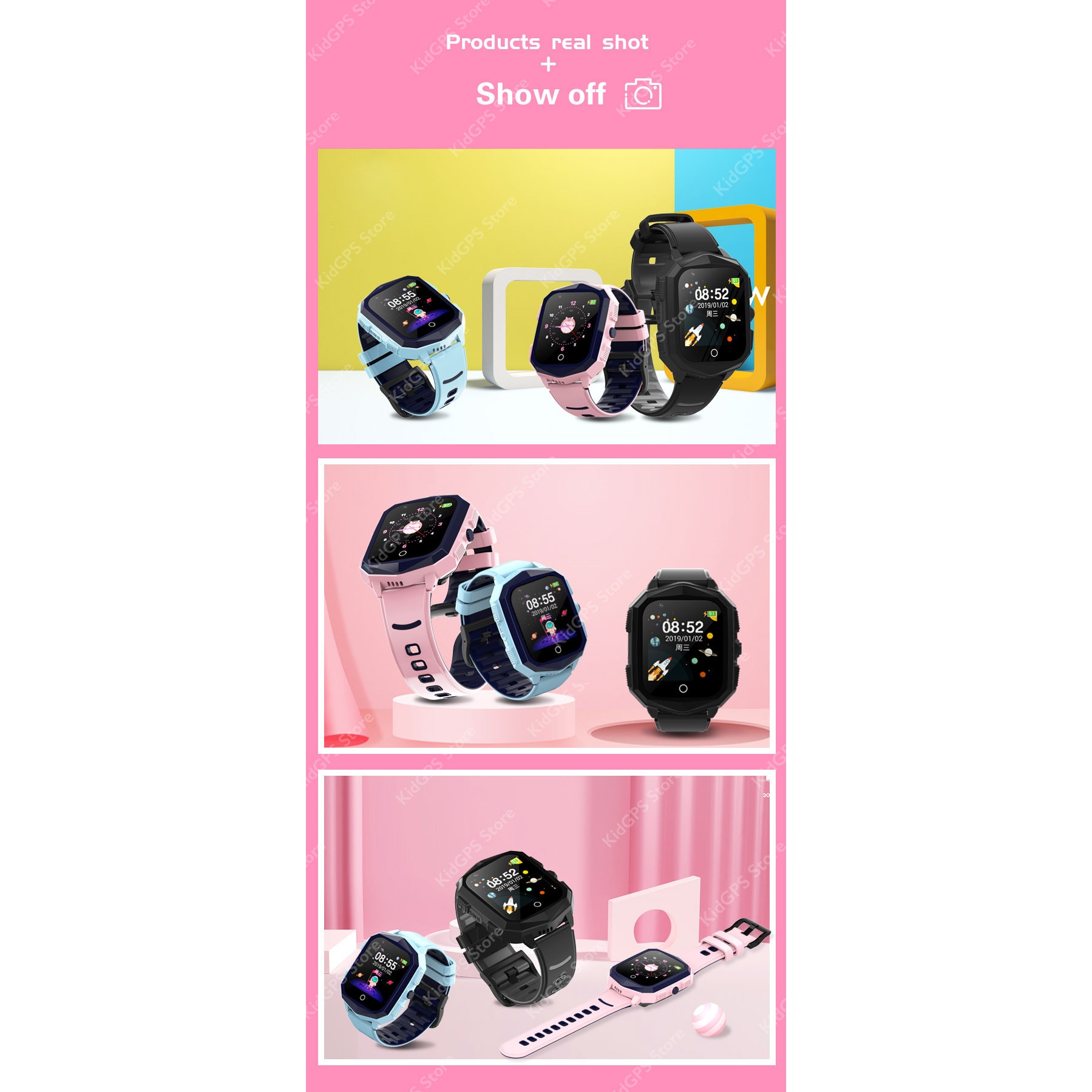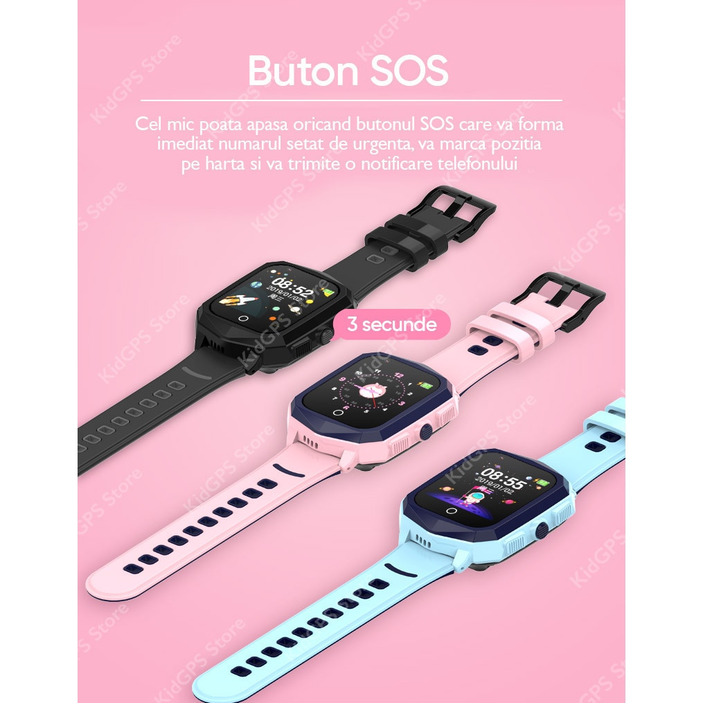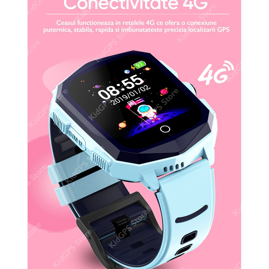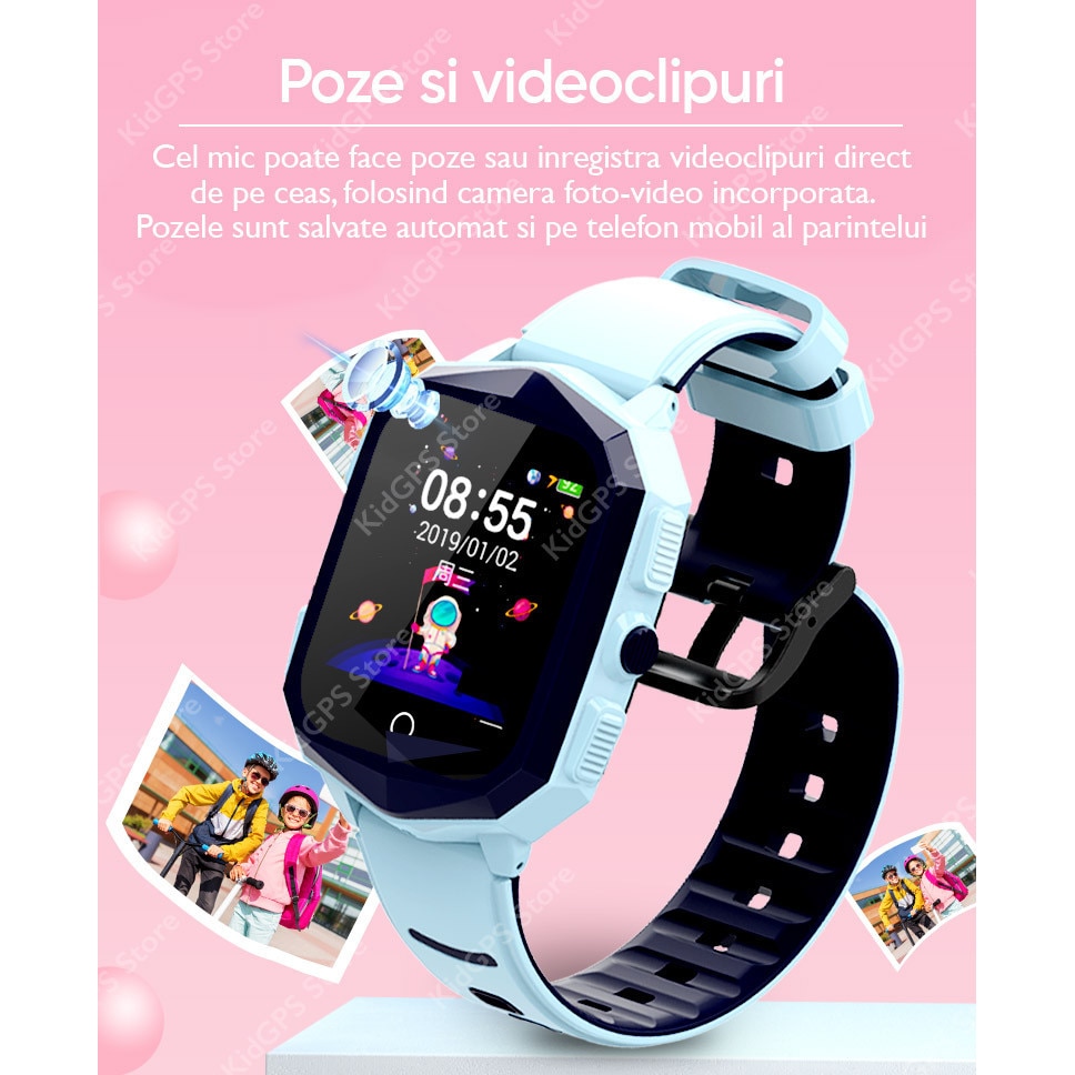 | Functii | Camera foto Alarma Pedometru Agenda Buton SOS Mesaje Vocale si text Vibratii History Monitorizare spion Localizare tip: GPS, LBS si Wifi Functie telefon Perimetru de securitate Rezistent la apa ip67 Love Reward 4G Inchidere de la distanta Monitorizare spion foto SMS alert Functie do not disturb Fatete multiple Apel video Carcasa rezistenta la soc |