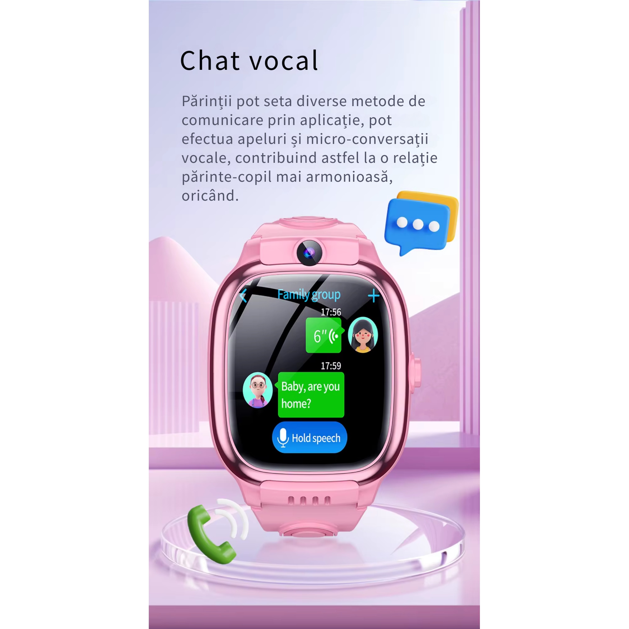 Mesaje vocale și text prin aplicația SeTracker2 între ceas și părinți/familie.