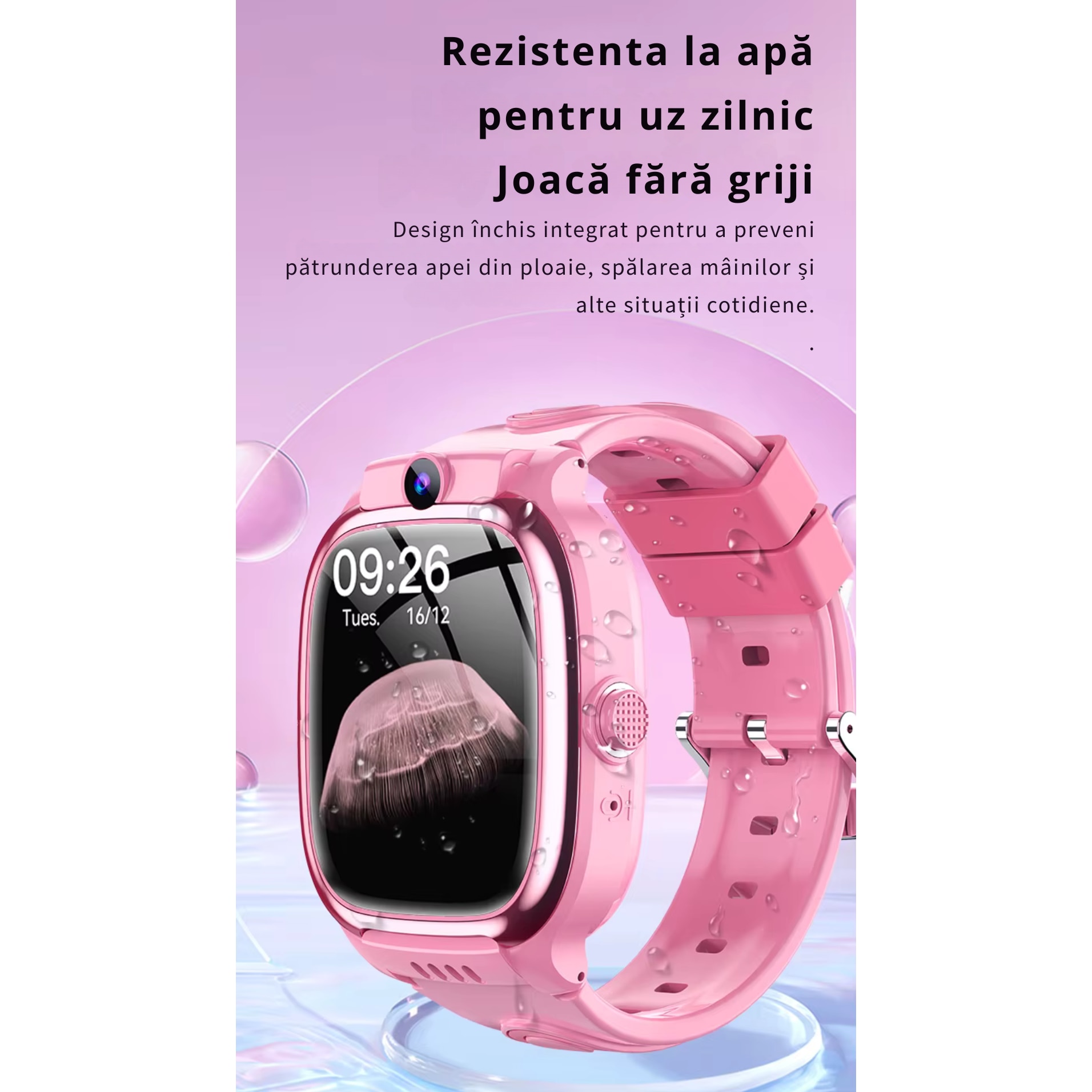 Ceas Smartwatch pentru Copii, Ceas inteligent, Conectivitate 4G, Localizare LBS+WiFi, Cartela SIM, Functie SOS, Camera, Ecran Tactil 1.69", Apel Video, Autonomie 72H, Rezistenta la Apa, Apelare Rapida, Functii Smart, Jocuri Educative, Roz