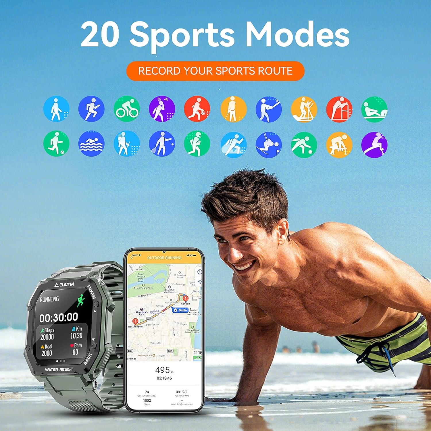 Ceas sportiv multifunctional, 1.69 inch, monitorizare ritm cardiac si oxigen in sange, impermeabil 3ATM, compatibil Android iOS