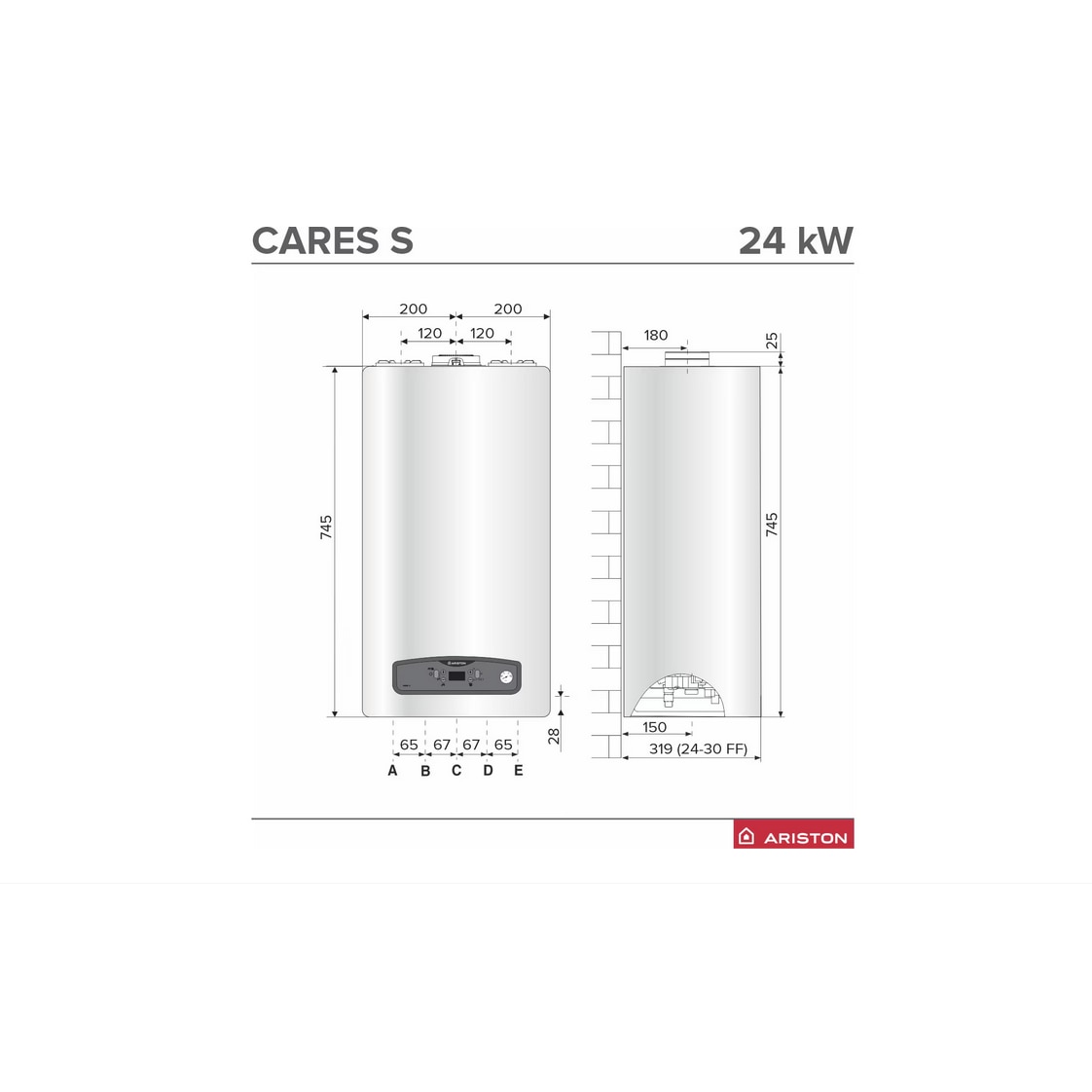 Centrală termică Ariston Cares S 24, 24 kW, schimbător de căldură din inox, display LCD, cu stabilizator tensiune 1000 VA