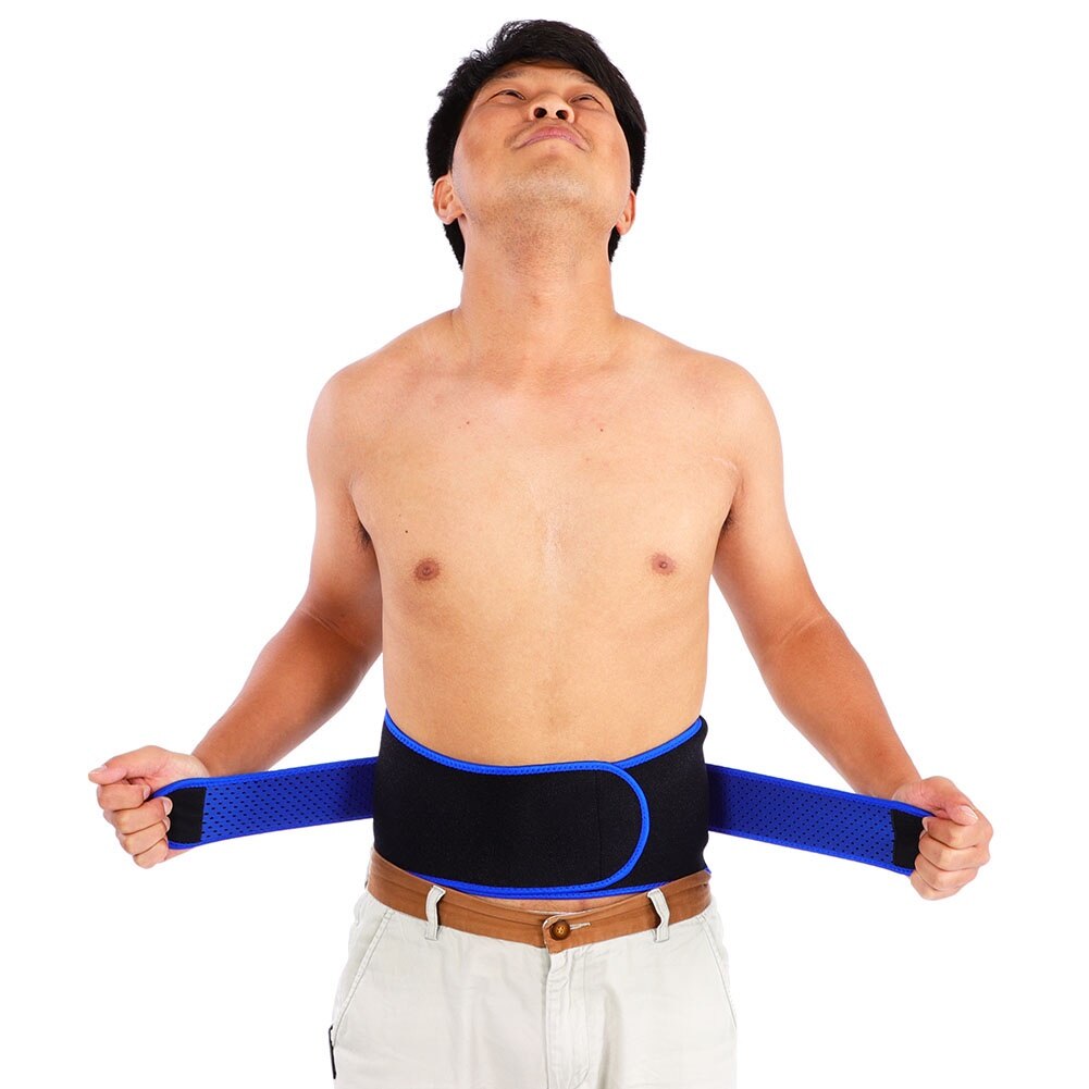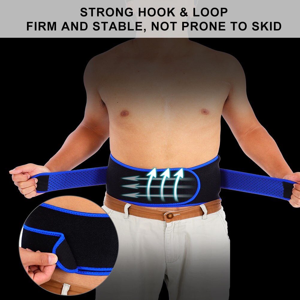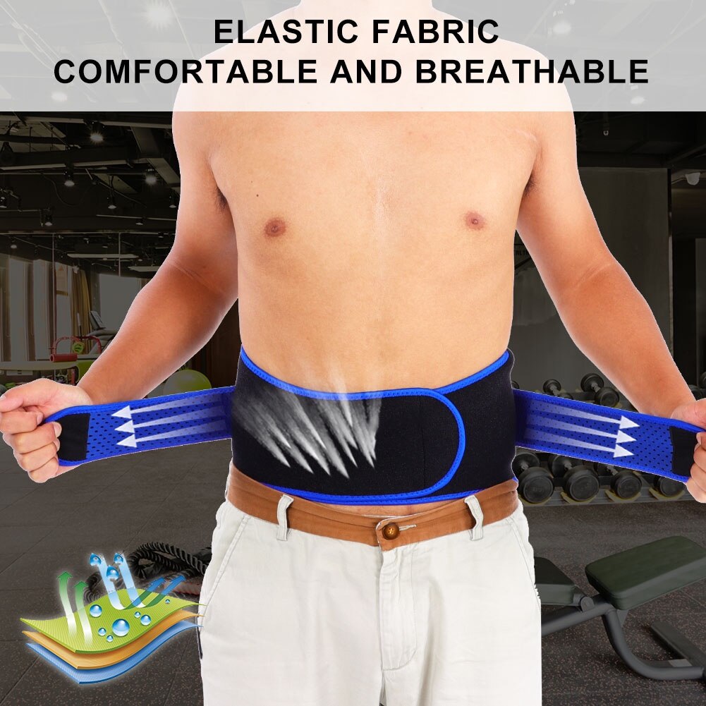 Centura de protectie lombara unisex, Longziming, material respirabil, ajustabil, albastra, dimensiune unica