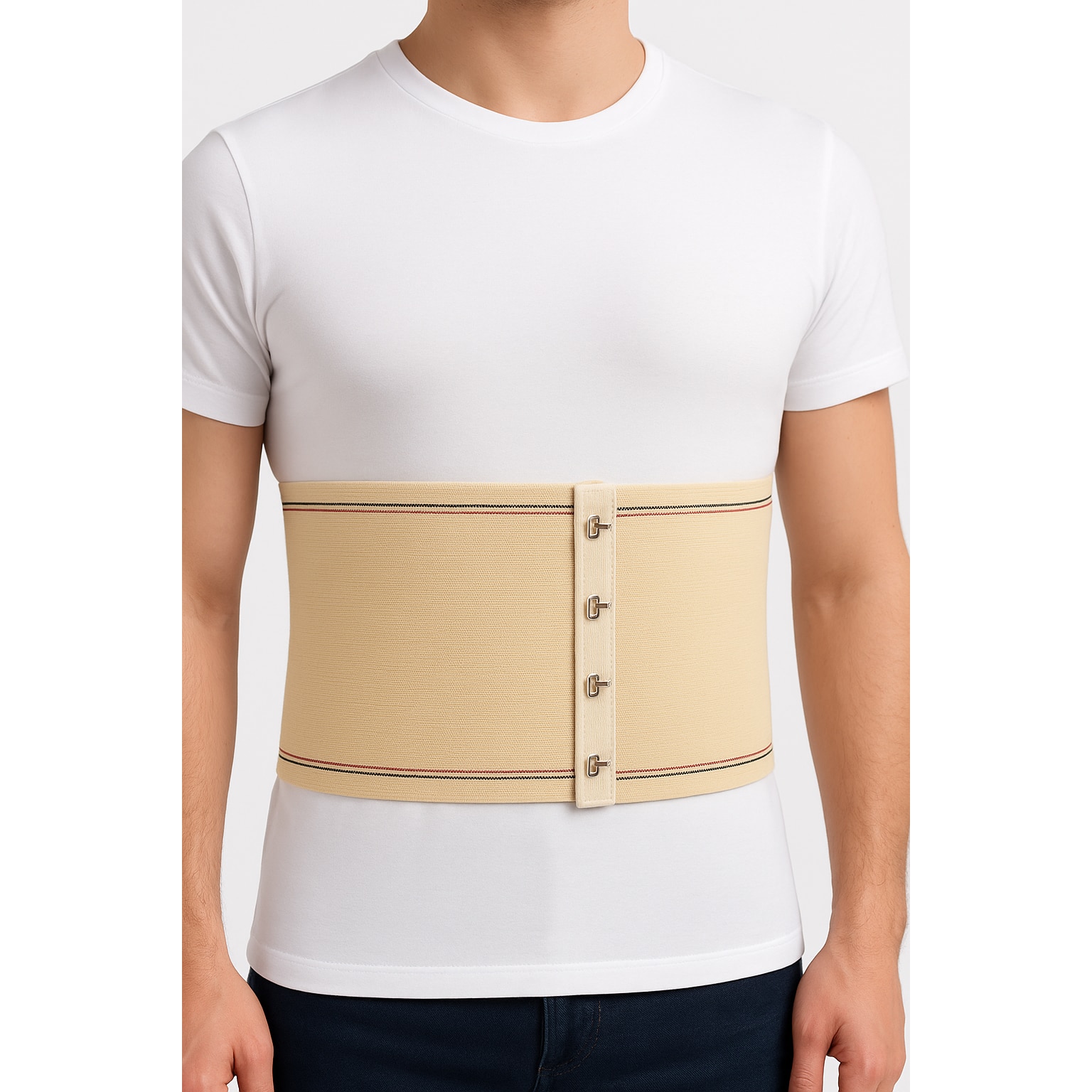Centura Medicala Lombara Abdominala Elastica cu Copci, Sustine Zona Lombara si Postoperator, Marimea XXL (Circumferinta 95–120 cm), Bej, Dimensiune 87 x 23 cm