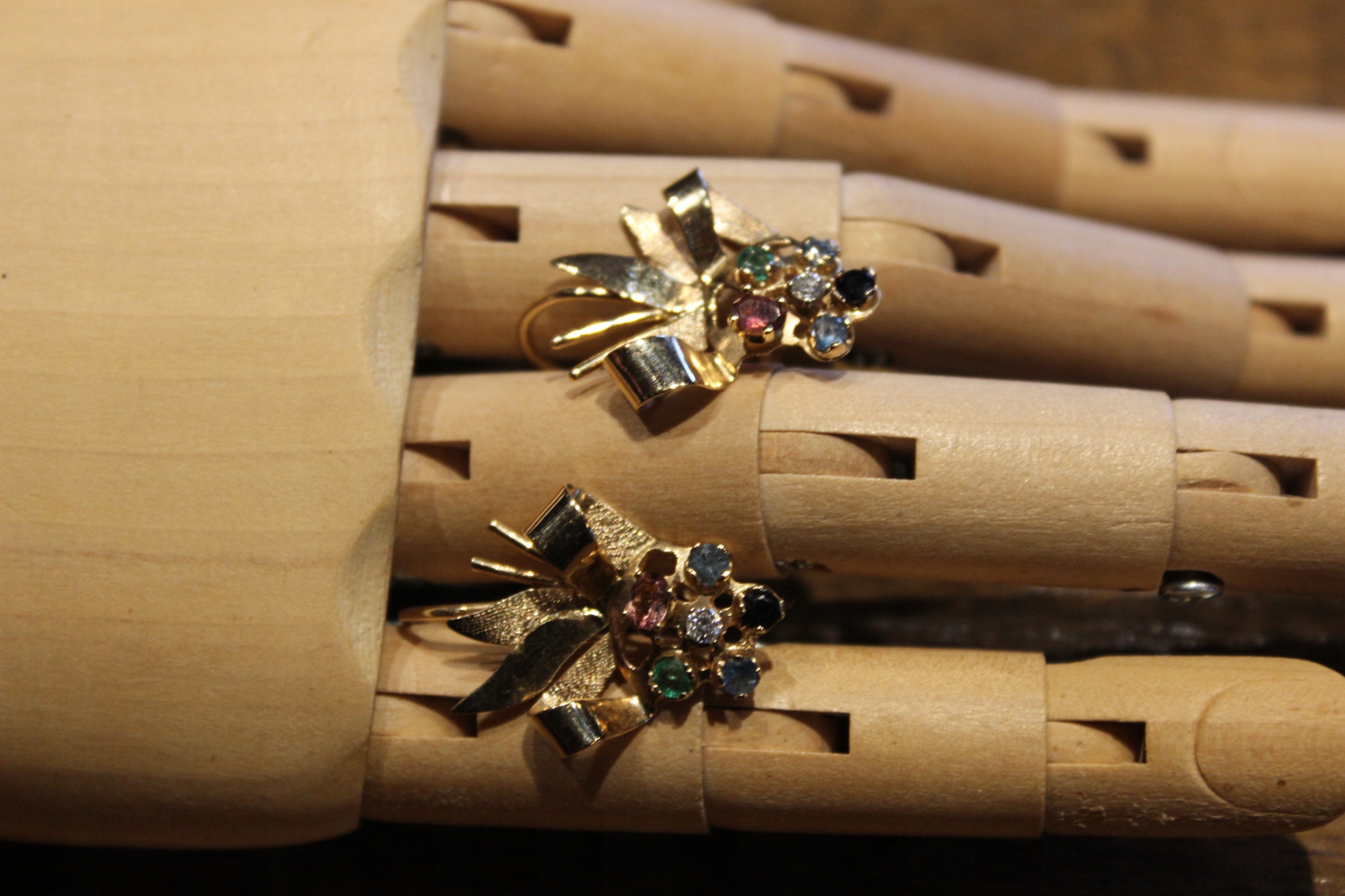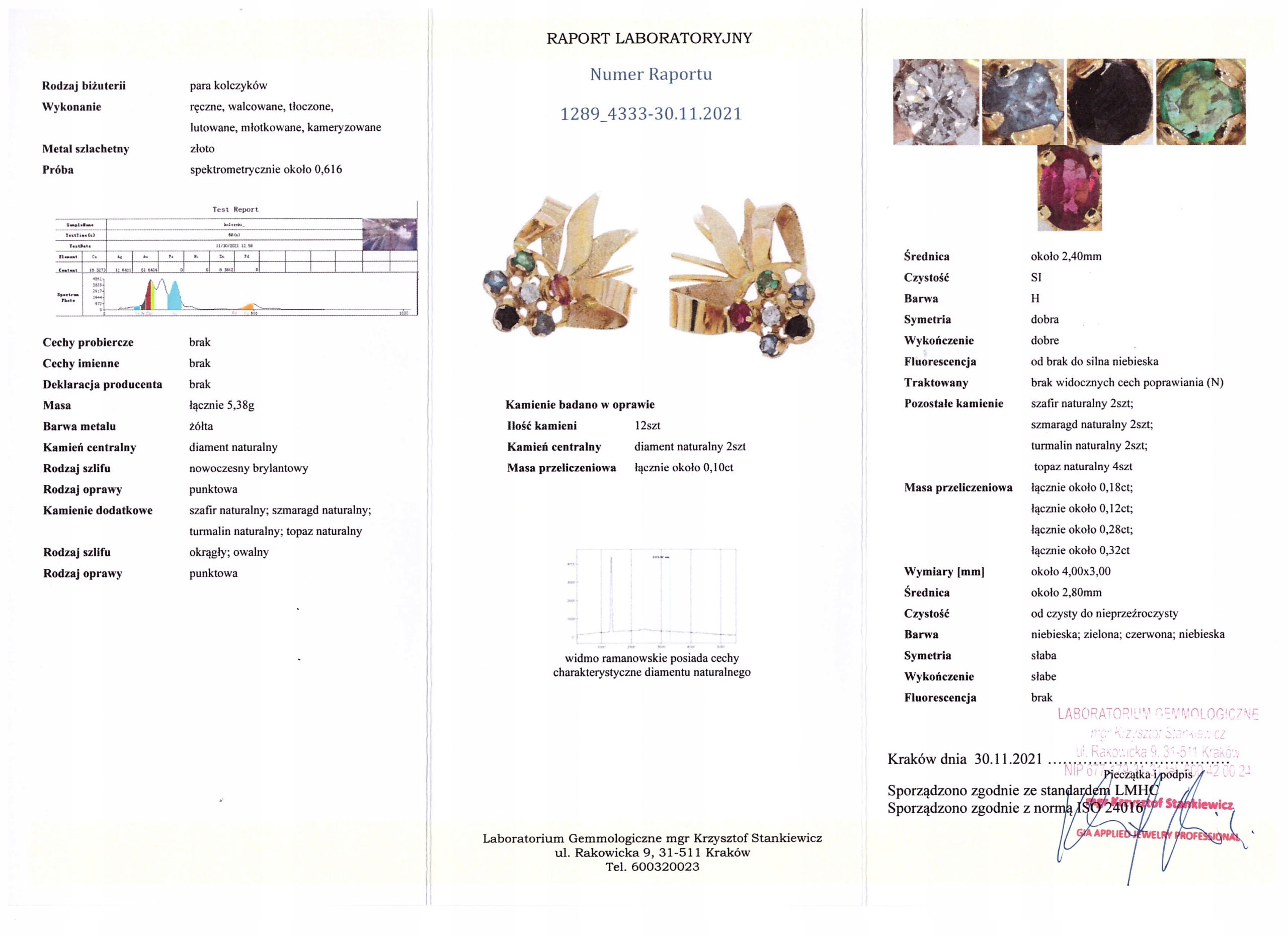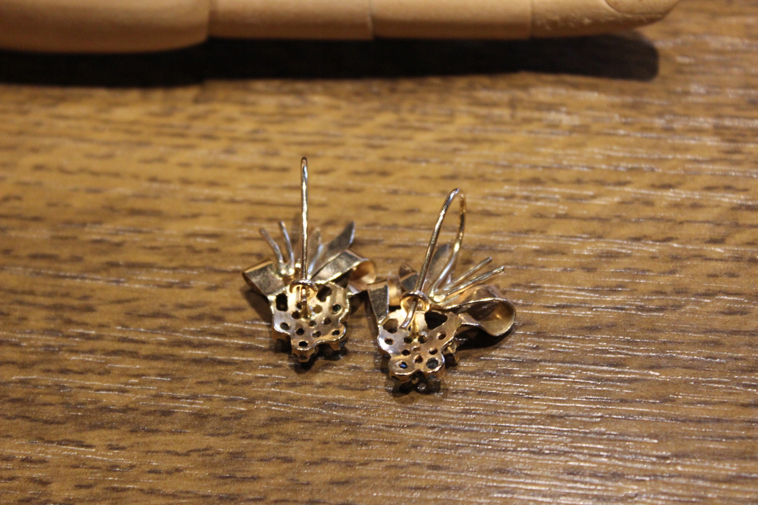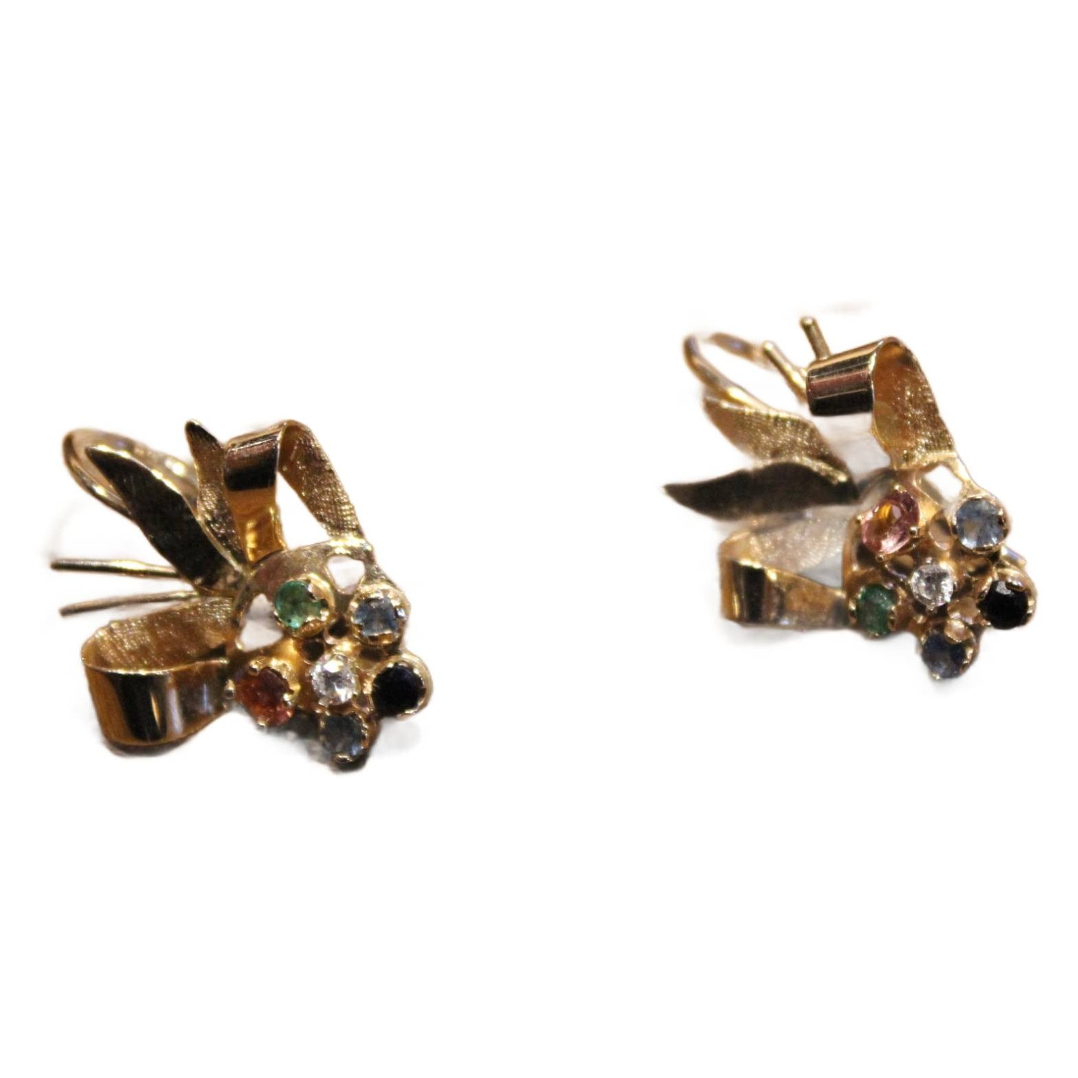 Cercei cu safire, smaralde, turmaline, topaze si diamante, 30x19mm