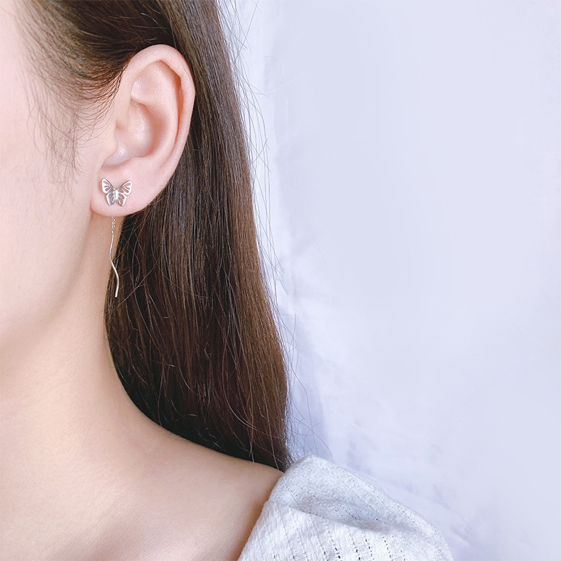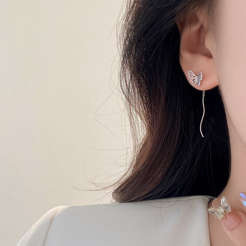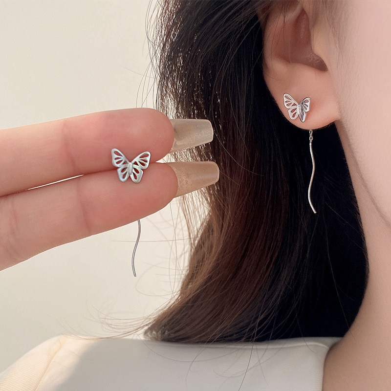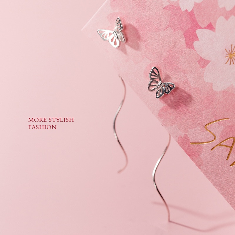 Cercei fluture din argint lungi ondulati