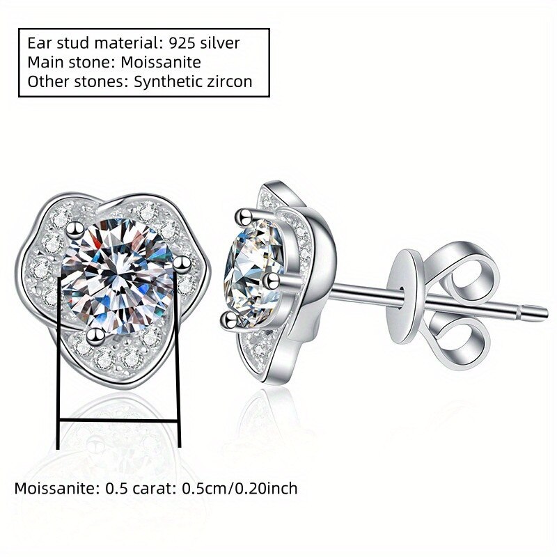 Cercei stud argint placat aur 14K, cu moissanite 0.5carate, cu certificat de autenticitate GRA, pentru femei și fete