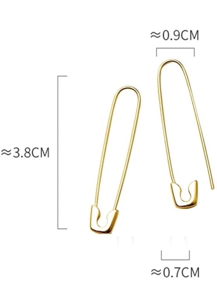 Cercei tip ac de siguranta, QttvbTna, argint S925 placat cu aur 14K, geometrici, hipoalergenici, 37mm