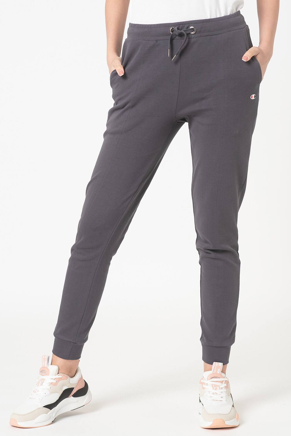 Champion - Pantaloni sport cu croiala conica si snur de ajustare, Gri antracit, L