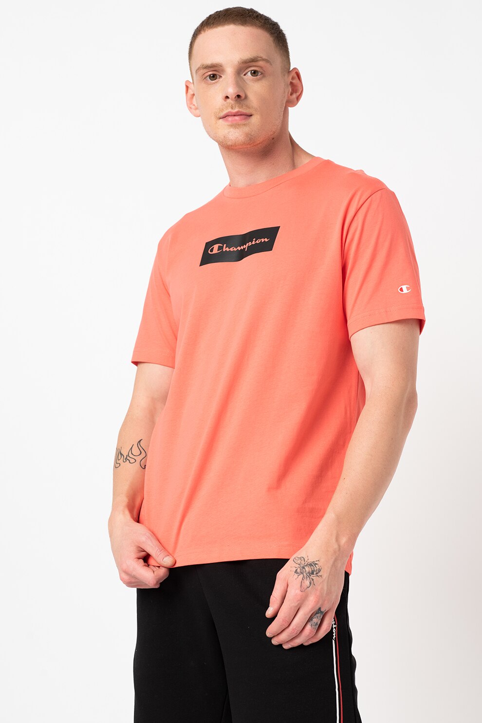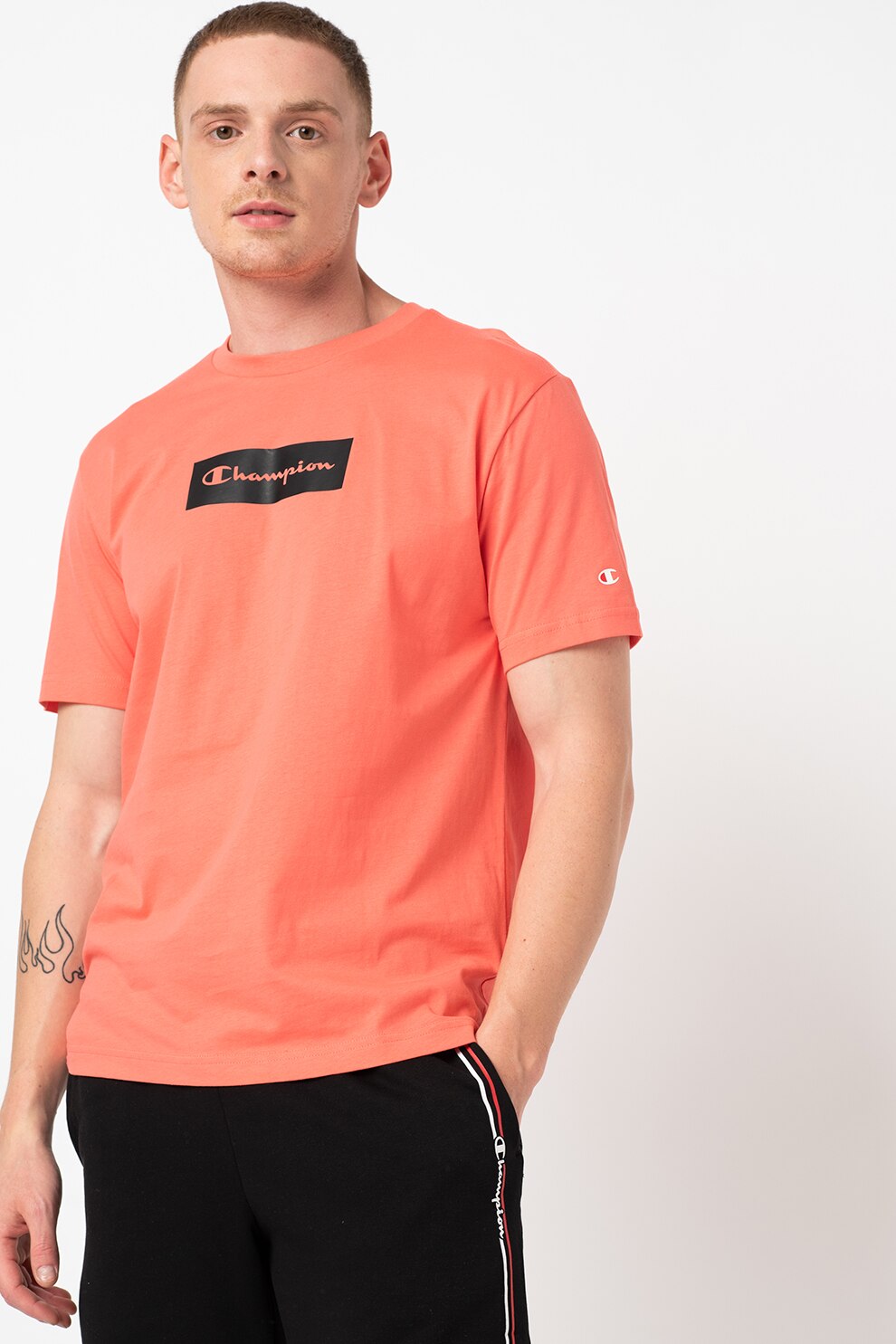 Champion - Tricou cu imprimeu logo si decolteu la baza gatului, Roz aprins, XL
