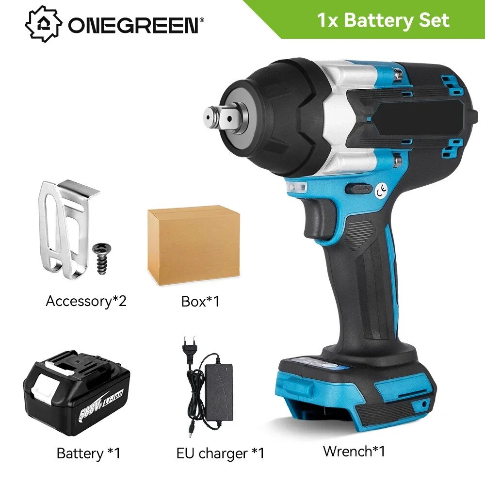 Cheie de impact electrica, 1800N.M, 7200 RPM, 1 acumulator, culoare albastra, set cu accesorii
