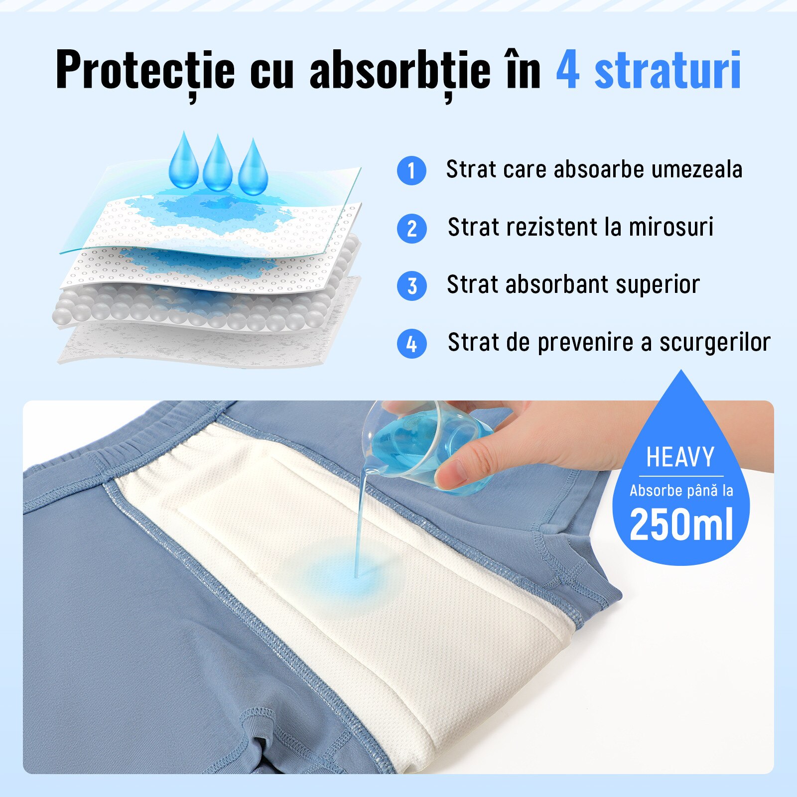 Chiloti incontinenta pentru barbati Carer, absorbtie 250ml, confortabili, lavabili, 2XL, teal