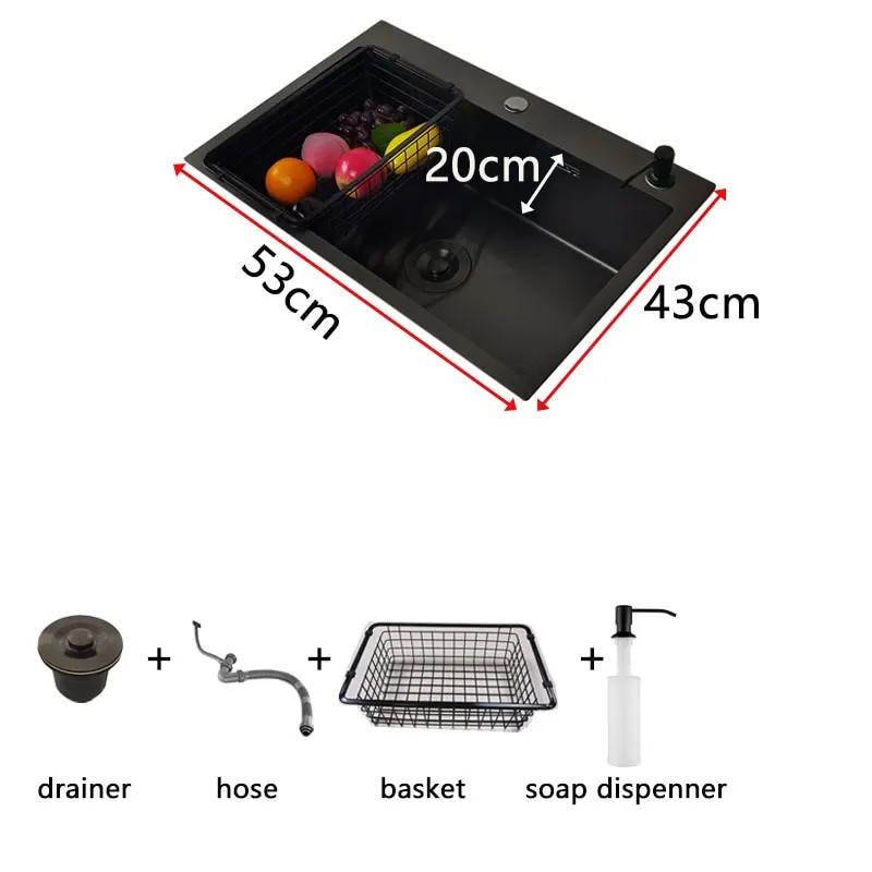 Chiuveta bucatarie, 53x43cm, din otel inoxidabil, instalare deasupra blatului, set