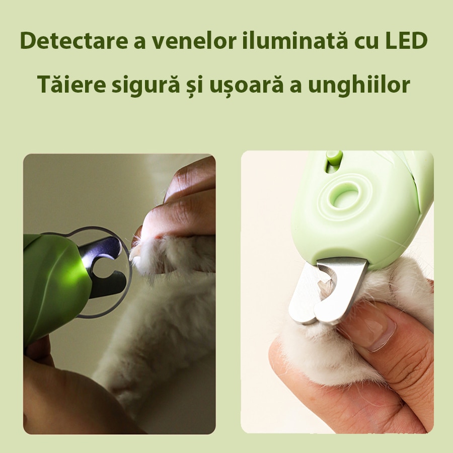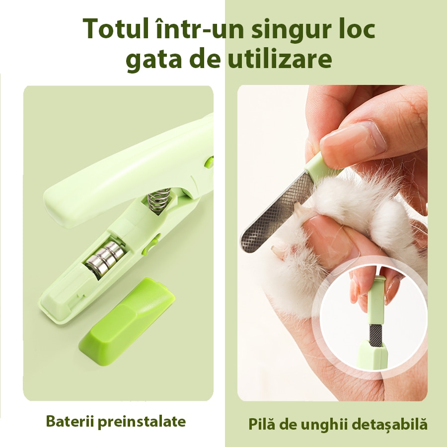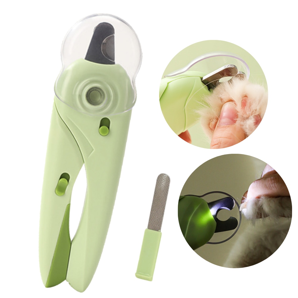 Cleste pentru animale, cu lumina LED, pentru pisici si caini de talie mica, cu pila de unghii integrata, verde