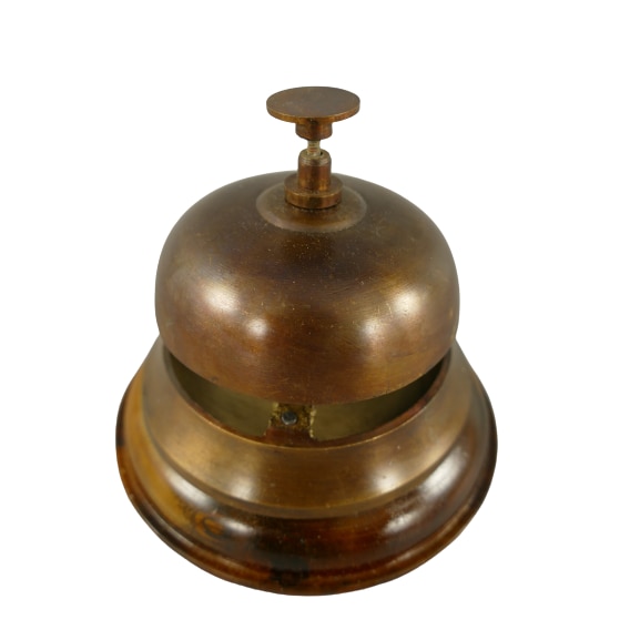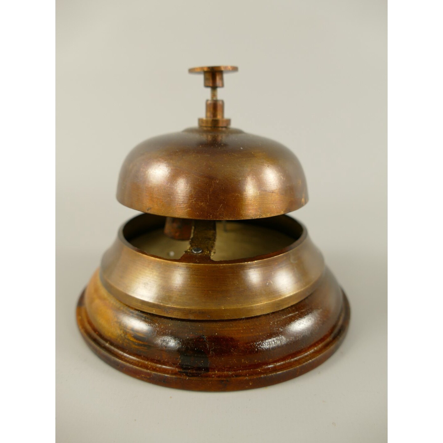 Clopotel sonerie pentru receptie hotel din alama, baza lemn lustruit, D 10x 12 cm
