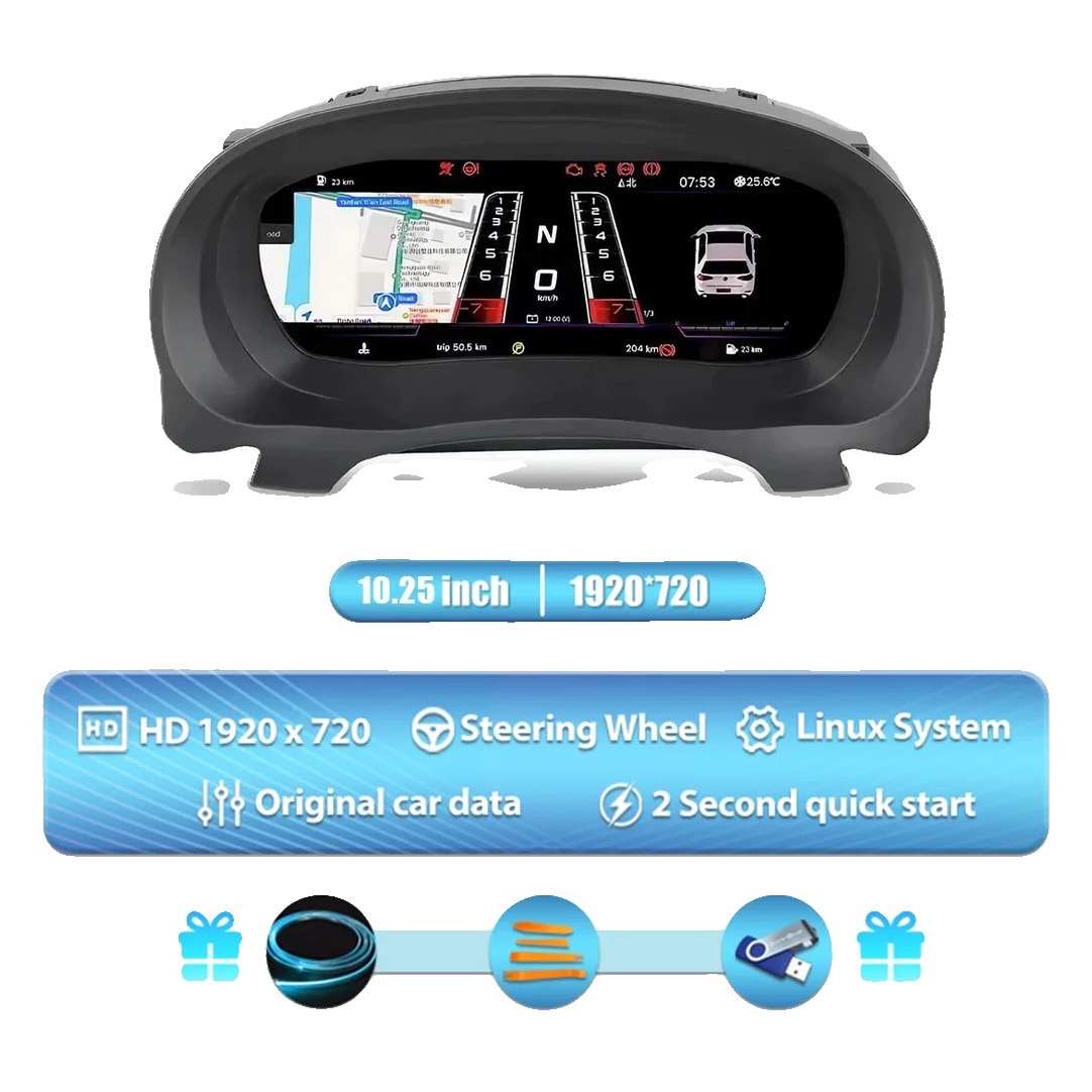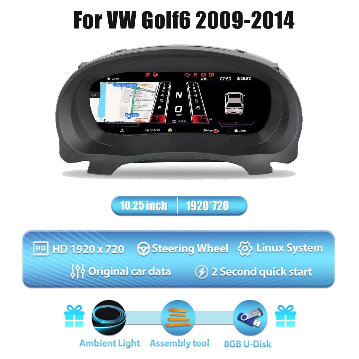 Cluster digital pentru Golf 6, 10.25 inch, 1920 x 720, moduri de afisare personalizabile, montare usoara, dimensiuni 40x30x20cm