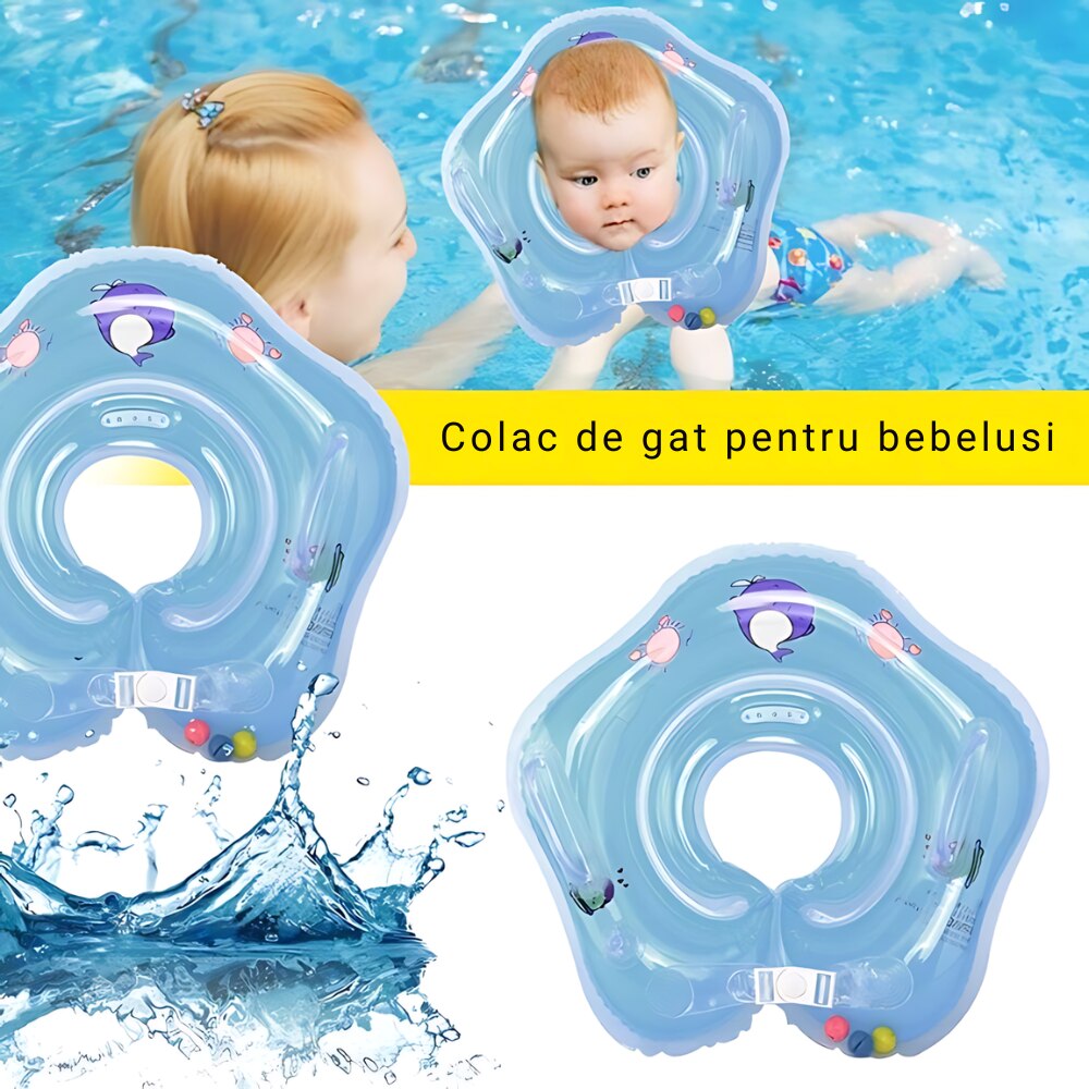 Colac de innot pentru bebelusi JOZY®, ajustabil, 0-24 luni, siguranta si confort, culoare albastru