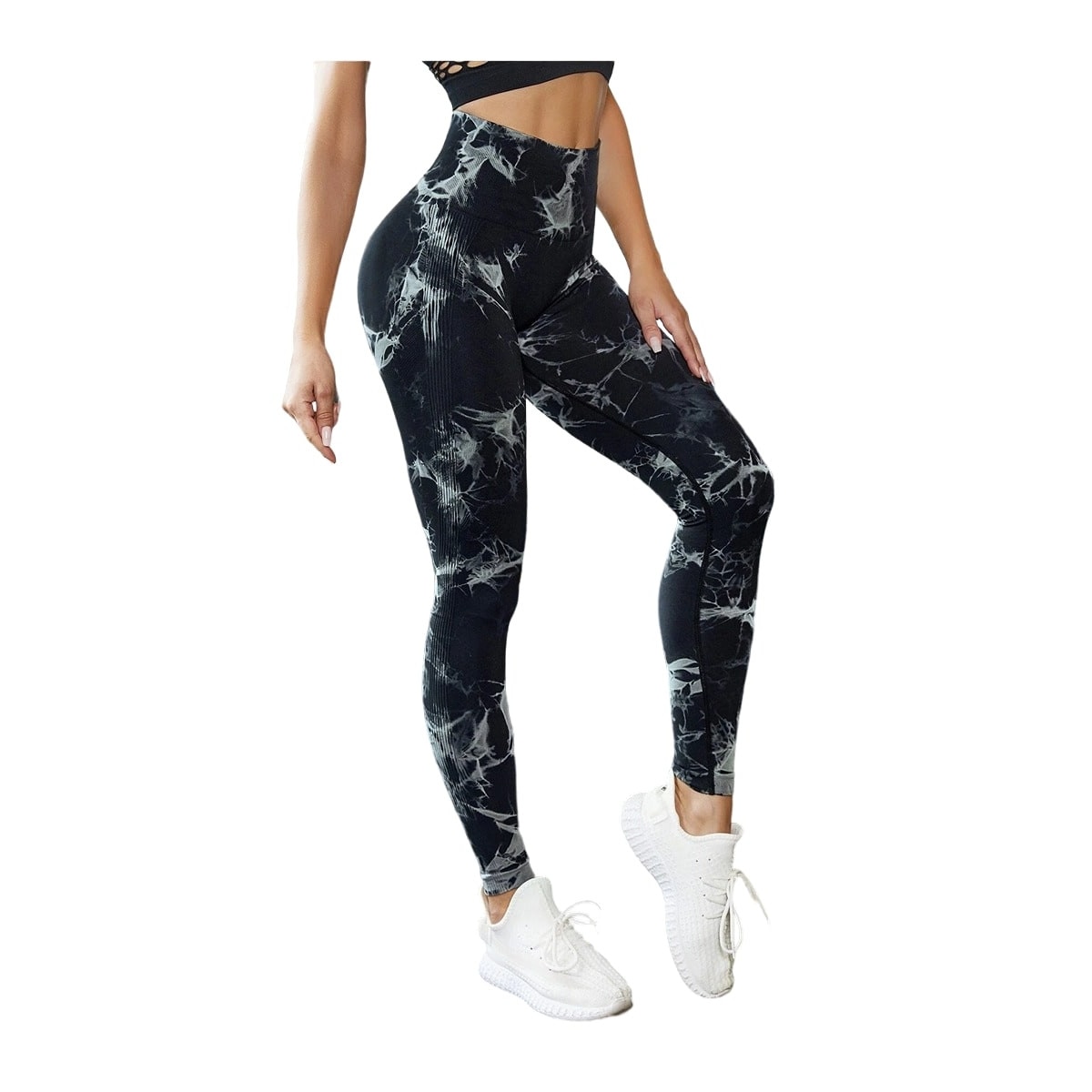 Colanti Fitness Dama Lungi Modelatori Cu Talie Inalta, Elastici, Efect Push Up, Model SEAMLESS TIE DYE, Multicolor, S