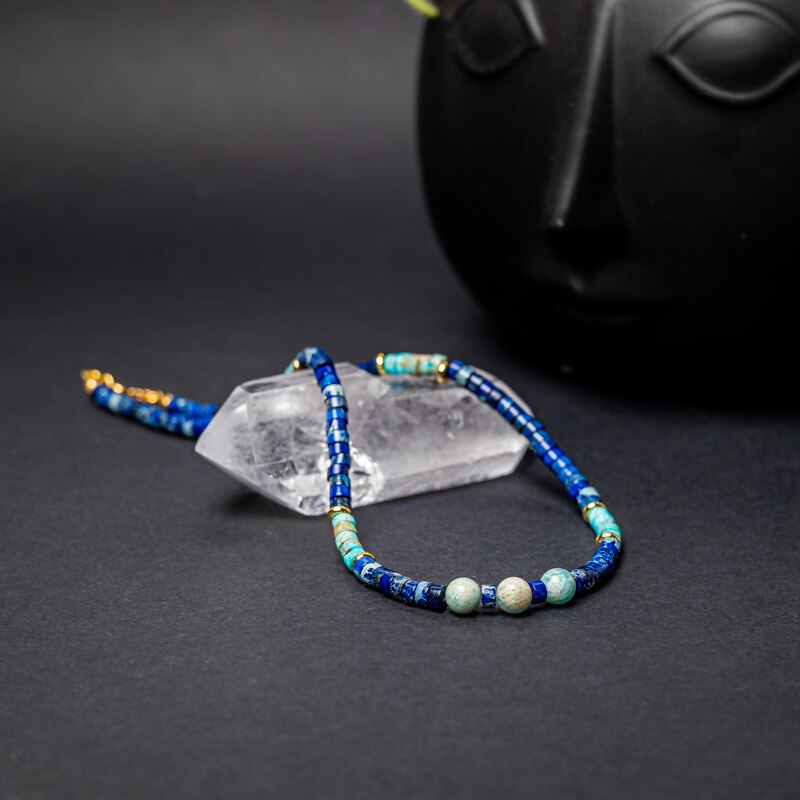 Colier choker Ezera, din pietre naturale de Sediment de Jasp, inchidere din Argint 925 placat cu Aur 14K