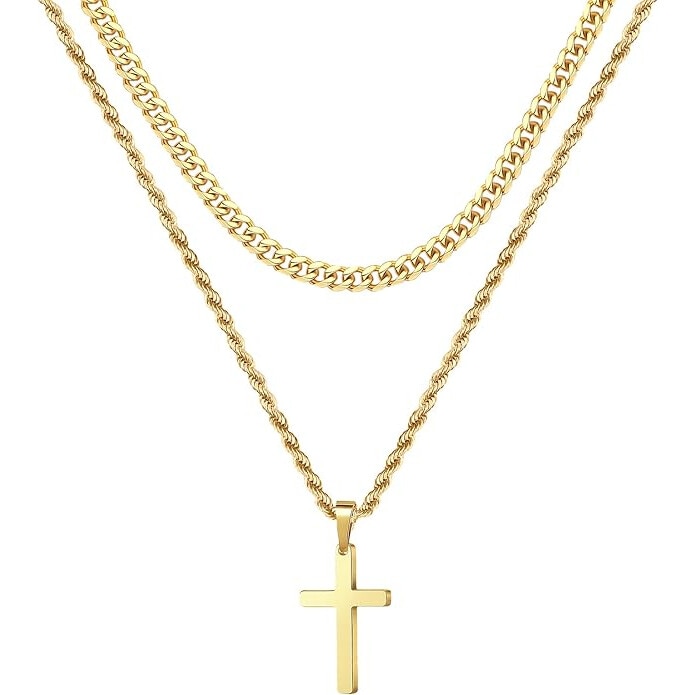 Colier incrucisat pentru barbati, PEEIK, 2 piese, otel inoxidabil 316L, 19x23 inch, argintiu