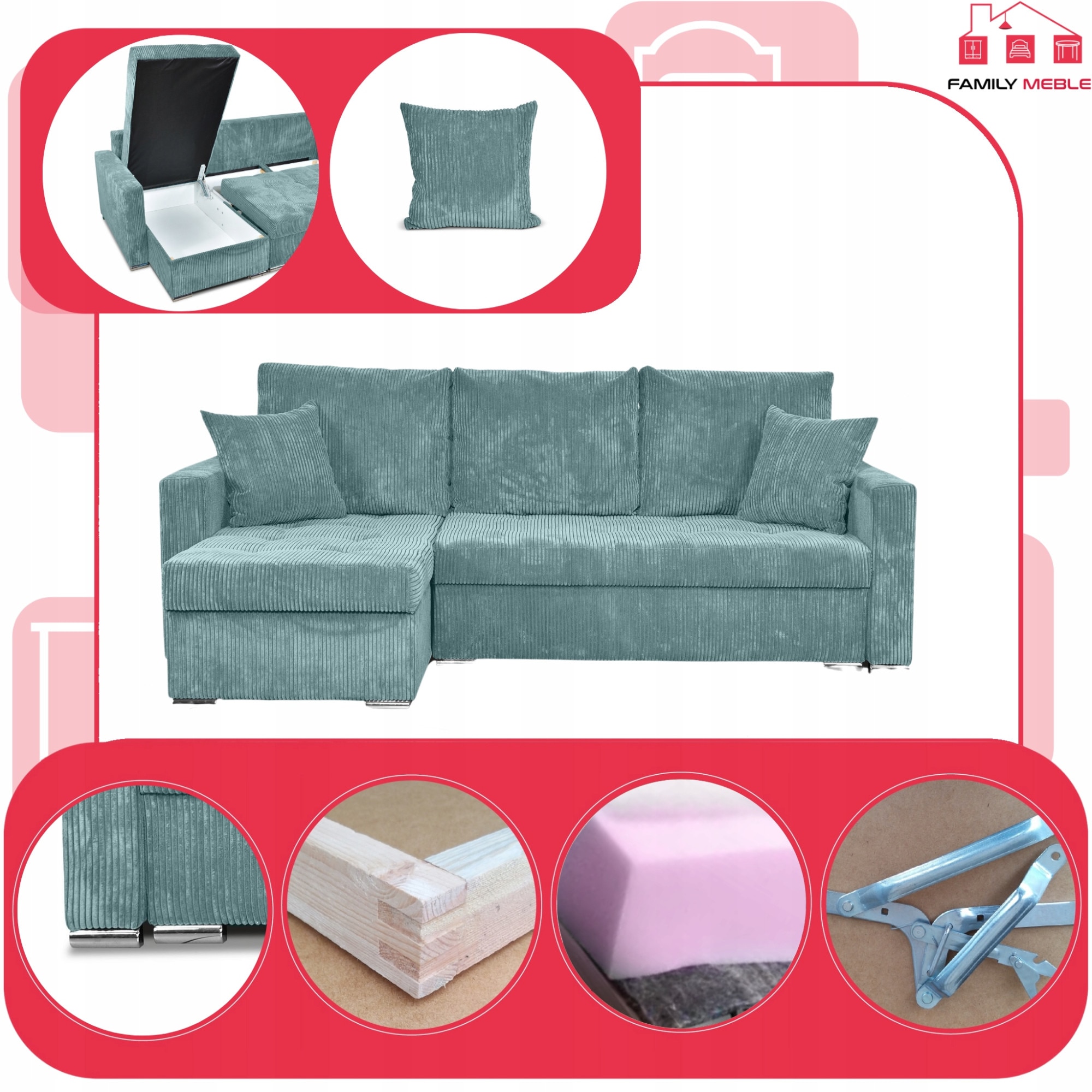 FamilyMeble - Suntem o companie poloneza, cu capital polonez, folosind materiale poloneze. Totul incepe si se termina in fabrica noastra, unde producem cu atentie de la zero ceea ce stim cel mai bine. Proiectul Bonito a fost creat timp de cateva saptamani pentru a va oferi in sfarsit cele mai bune si mai durabile solutii. Disponibil in opt culori, confectionate dintr-unul dintre velururile tale preferate.