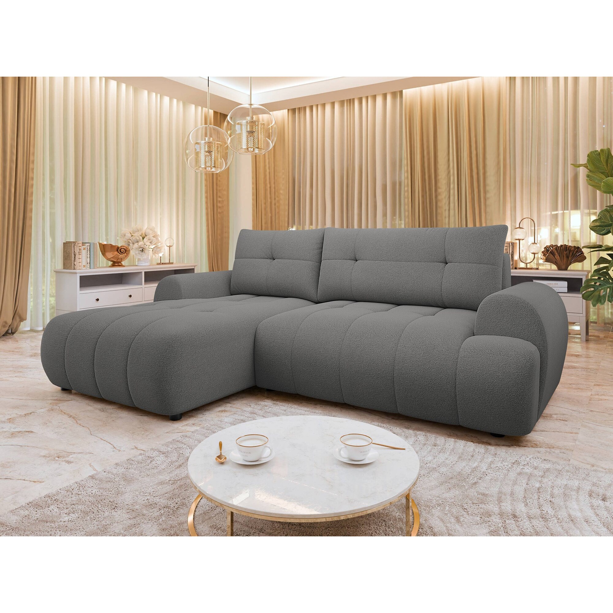 Coltar cu functie de dormit Liforti Stanga, MIRJAN24, gri inchis, 177x265x93 cm