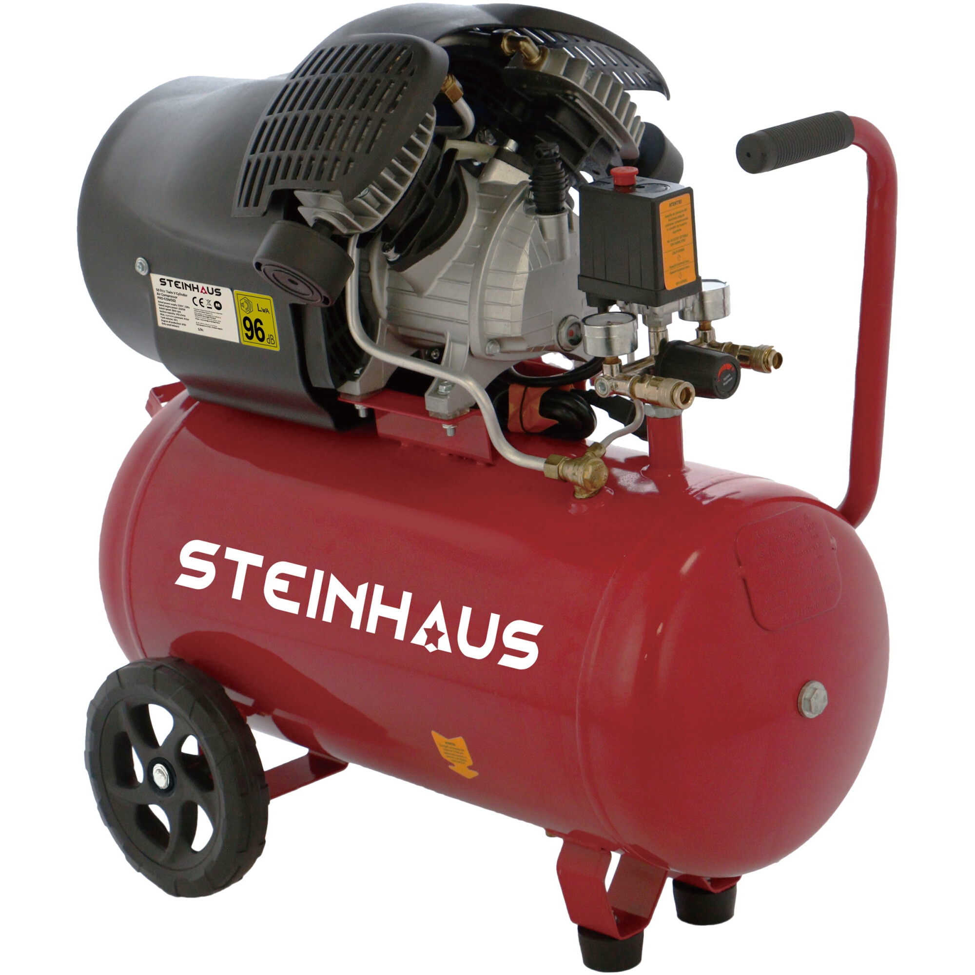 Compresor aer cu 2 cilindri Steinhaus, 50l, 2200W, 3CP, 8bari, 392 L/min