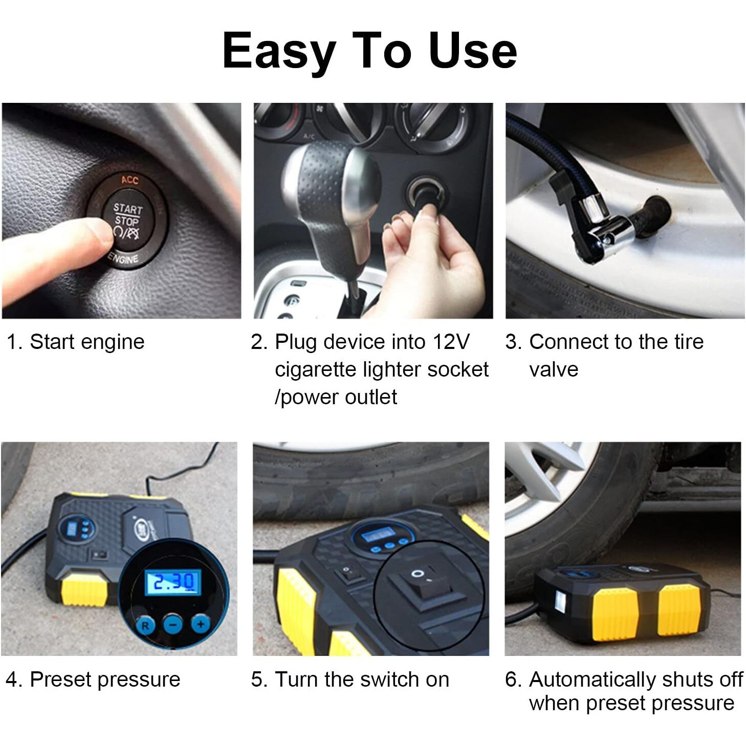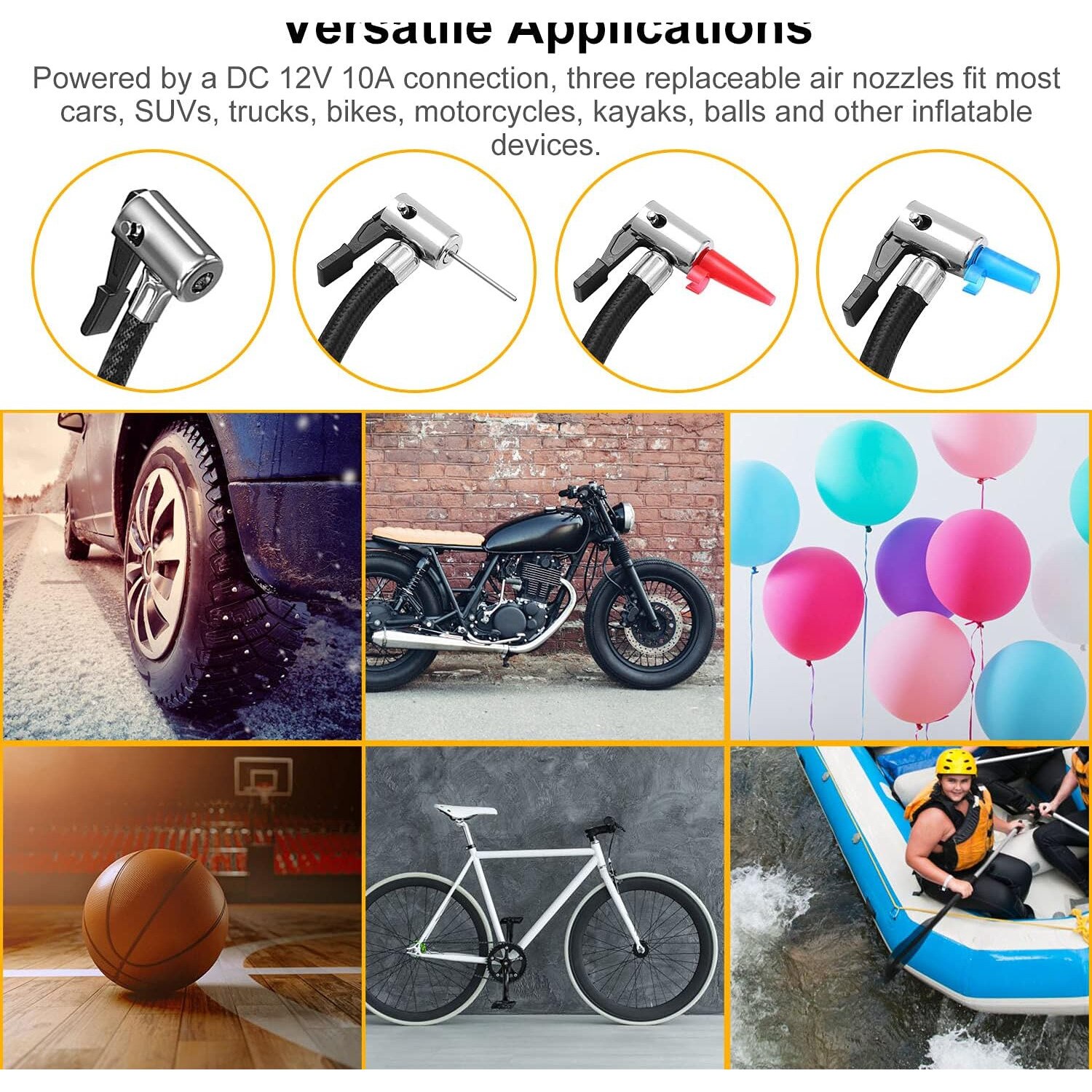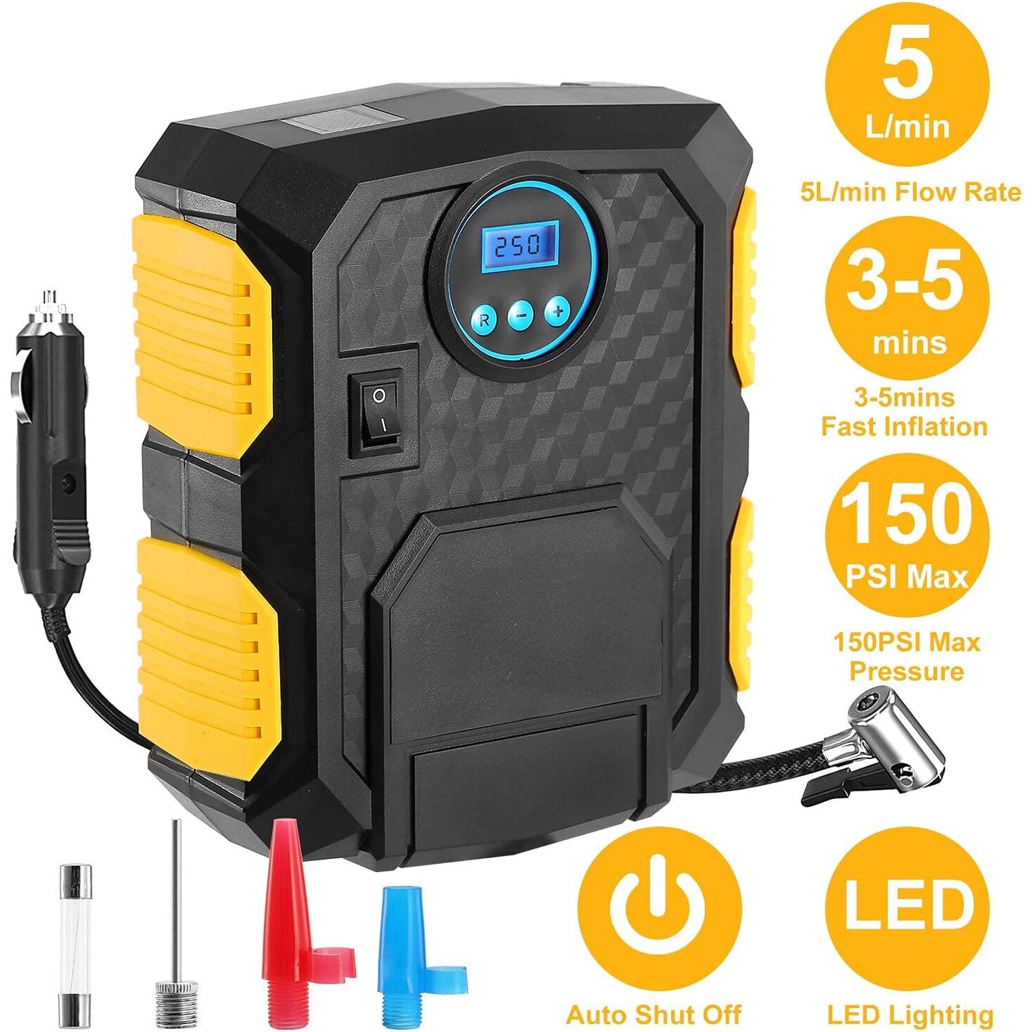Compresor de aer portabil 12V 150PSI 25L/min cu display LCD digital si 3 duze de umflare
