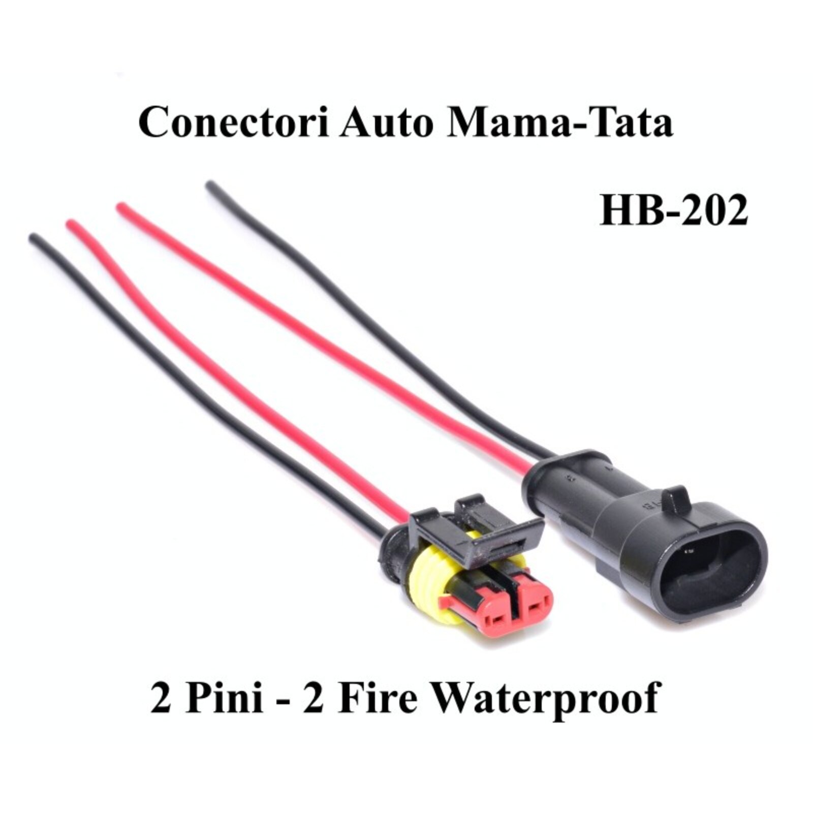 Conectori auto impermeabili cu 2 fire, 2 pini, lungime de 13 cm, negri