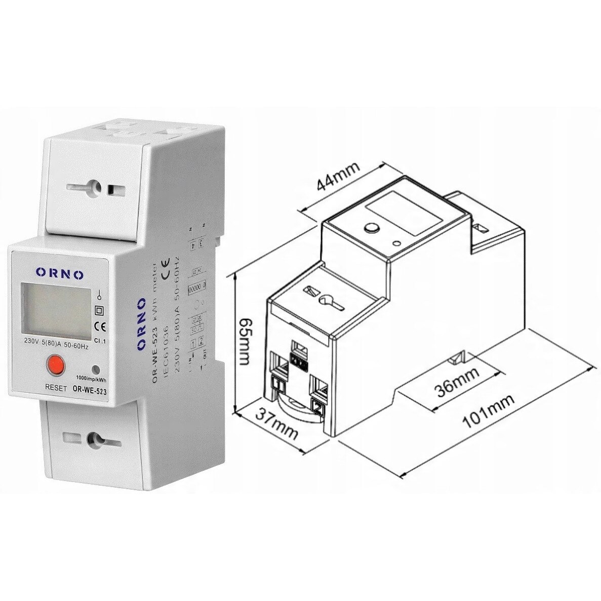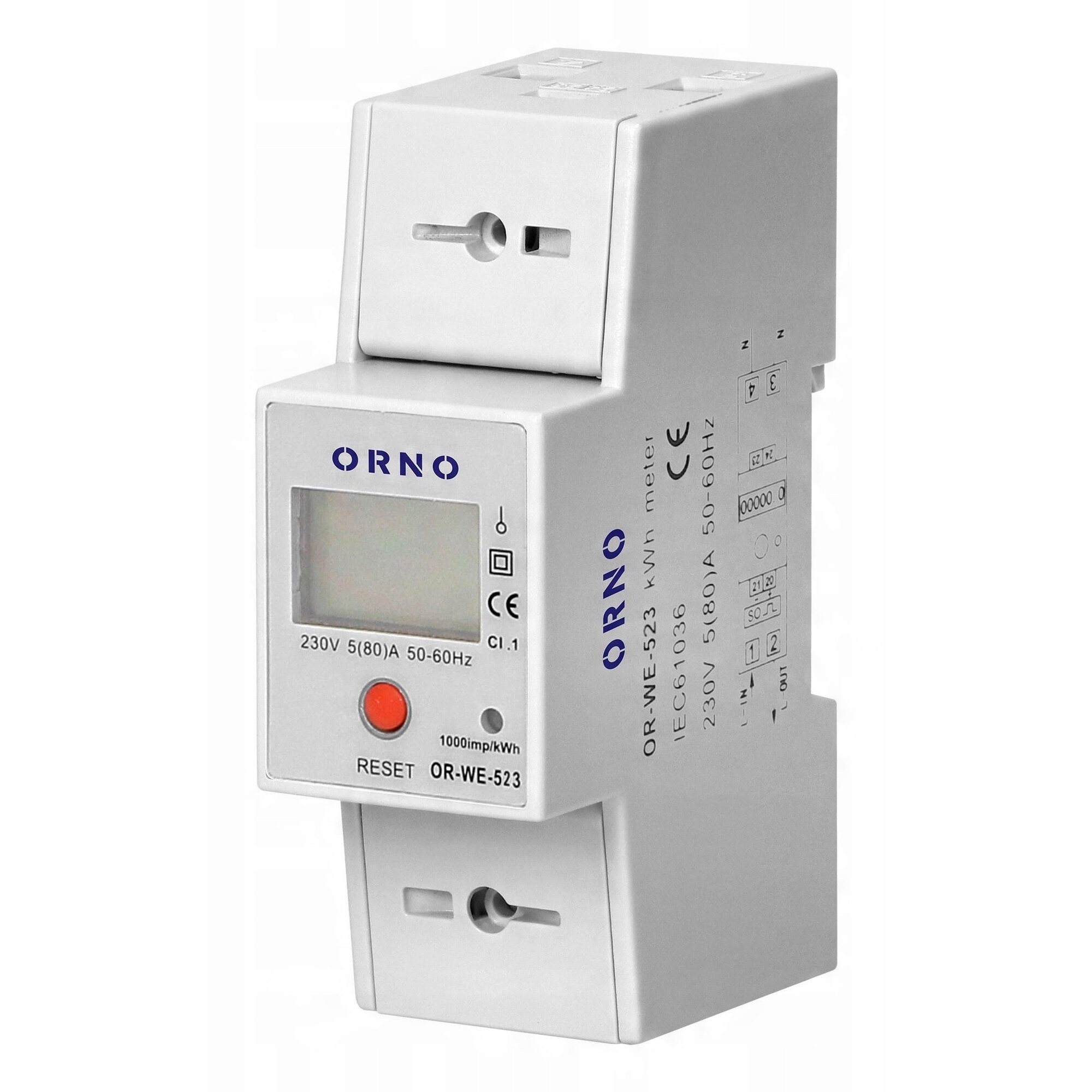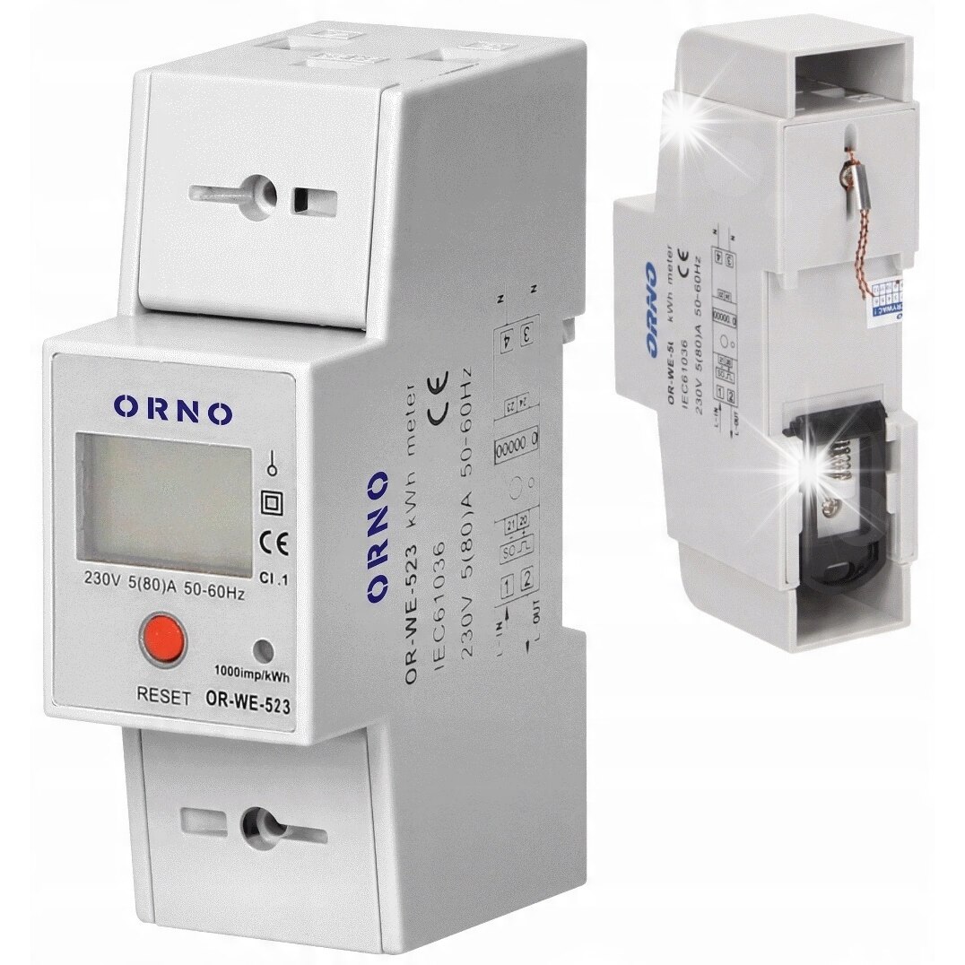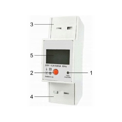 Contorul are un indicator suplimentar resetabil . Pentru montare pe o șină DIN de 35 mm .
