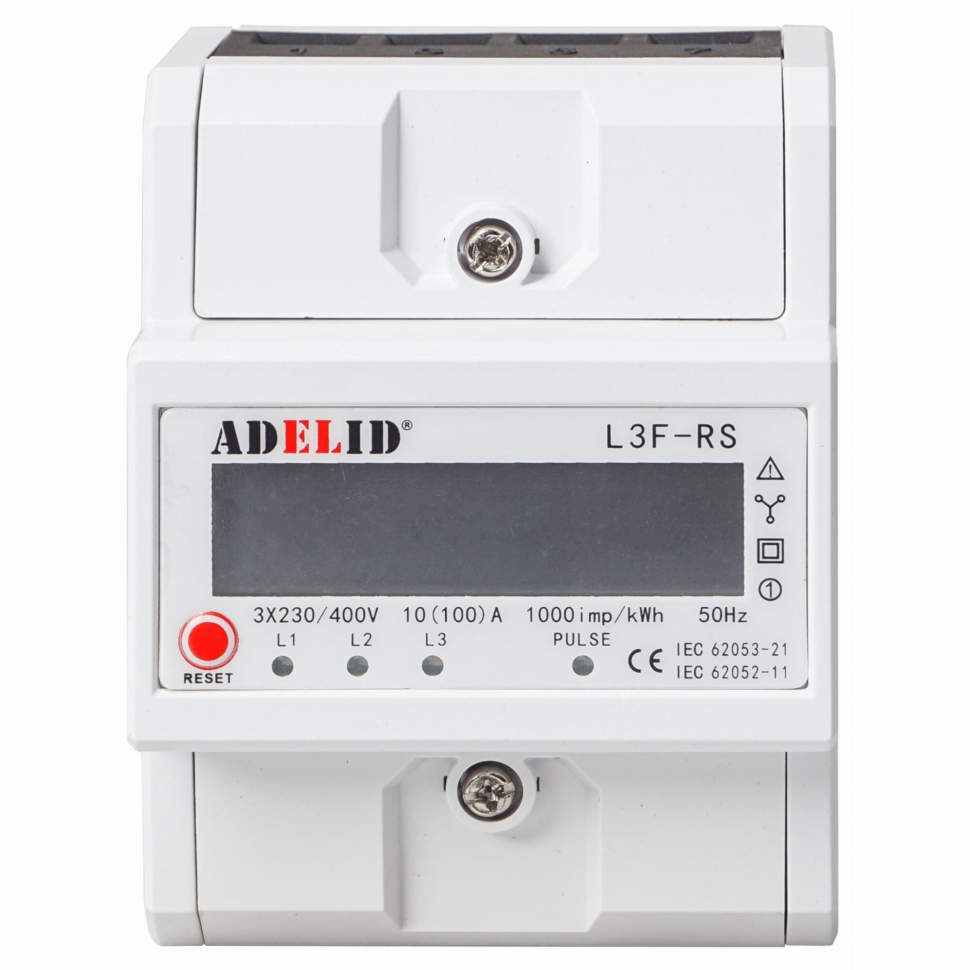 Contor trifazat, ADELID, pentru montaj pe sina DIN, functie RESET, 100A, 3x120/208V, 100x35x72mm, alb