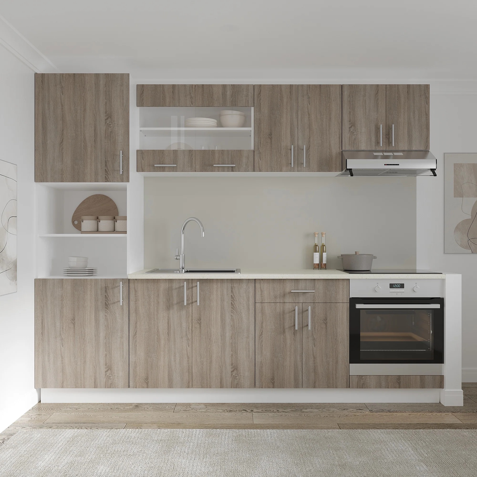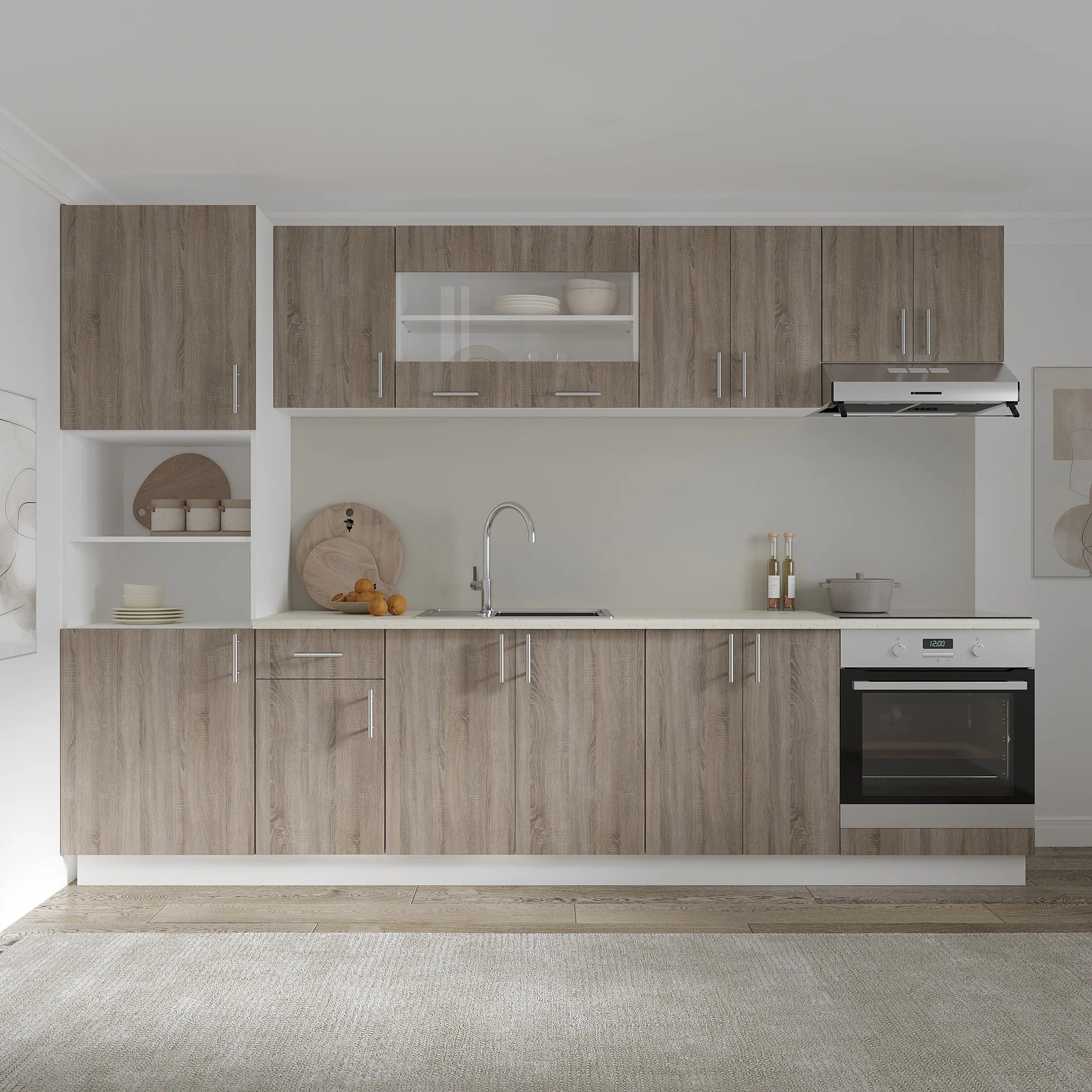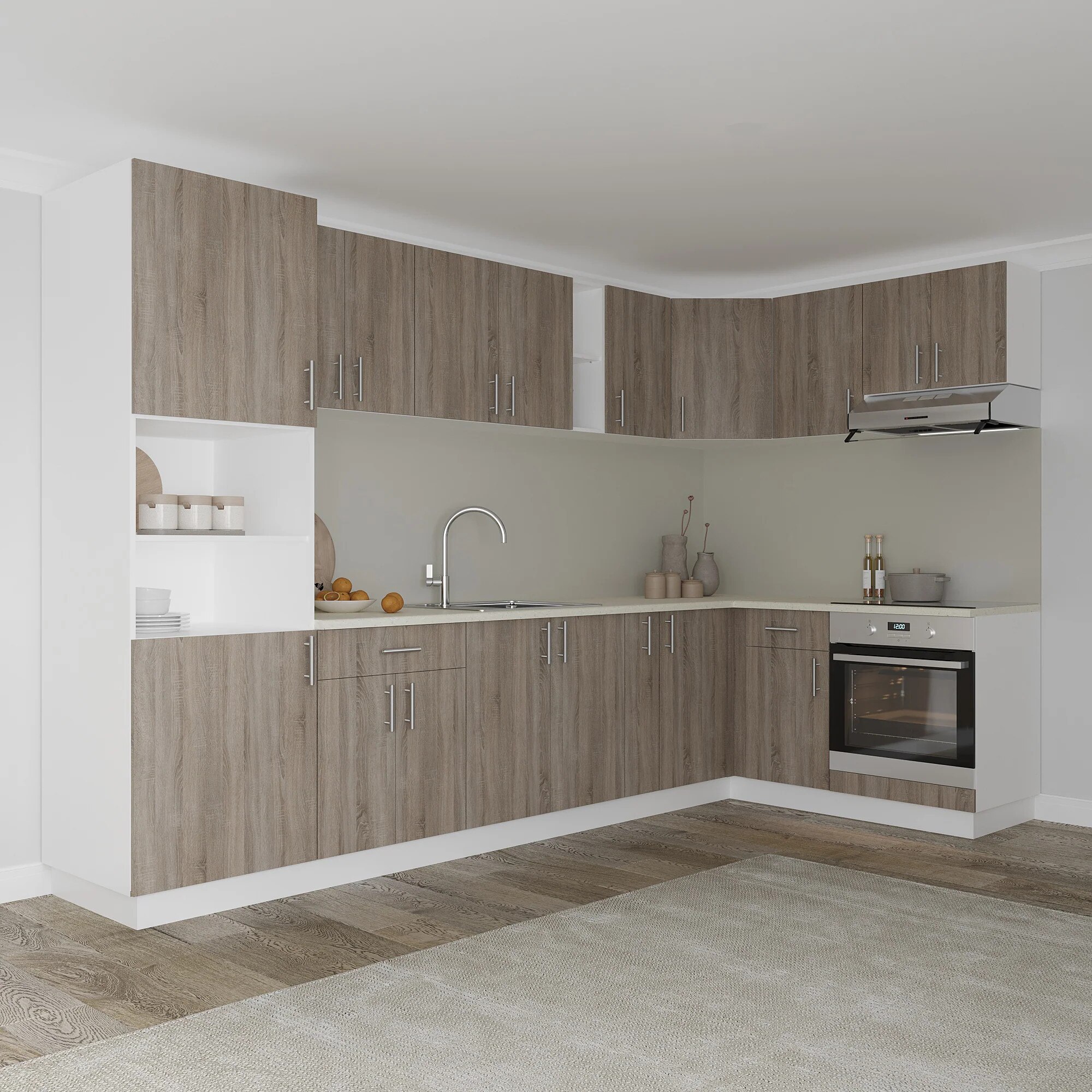 Corp Turn haaus Karo, 2 Usi, cu spatiu cuptor, Stejar Sonoma Inchis/Alb, 60 x 57 x 210 cm
