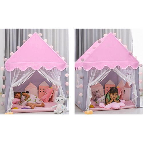 Cort de joaca pentru fetite cu lumini LED incluse, tip casa, cu ferestre, interior / exterior, 130 x 100 x 115 cm, Roz