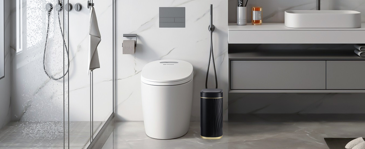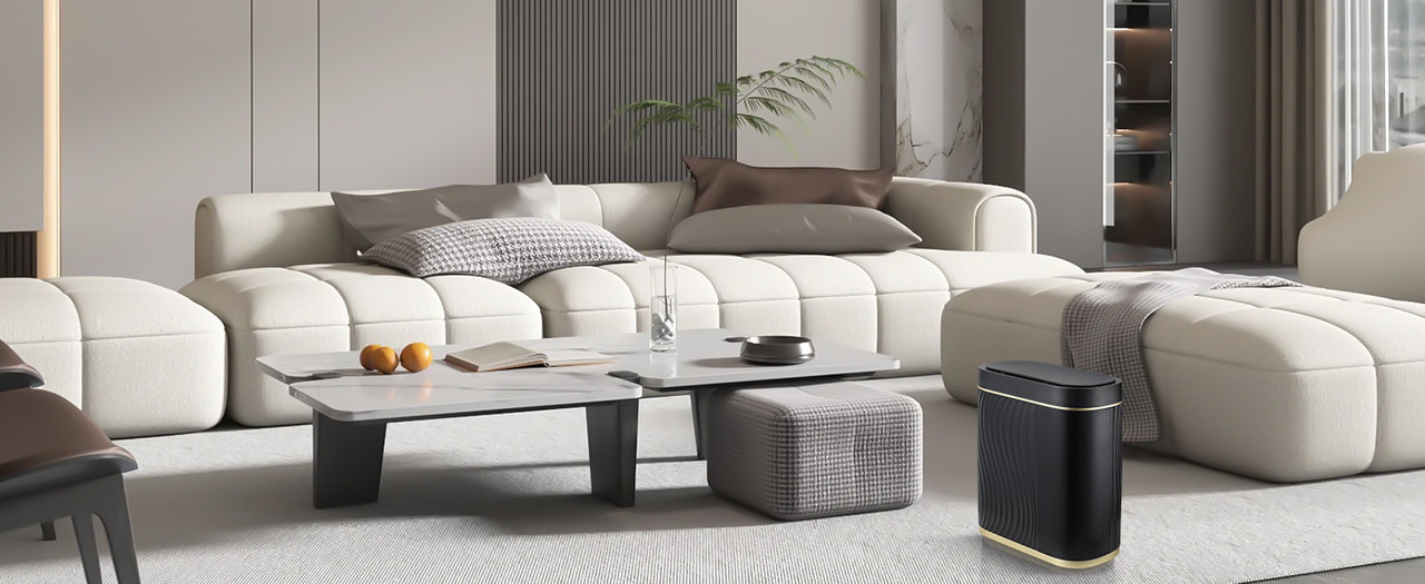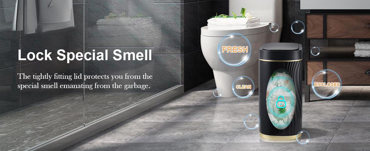 Cos de gunoi Inteligent JFYU, 8L, senzor de miscare Infrarosu, rezistent la apa IPX5, negru/auriu