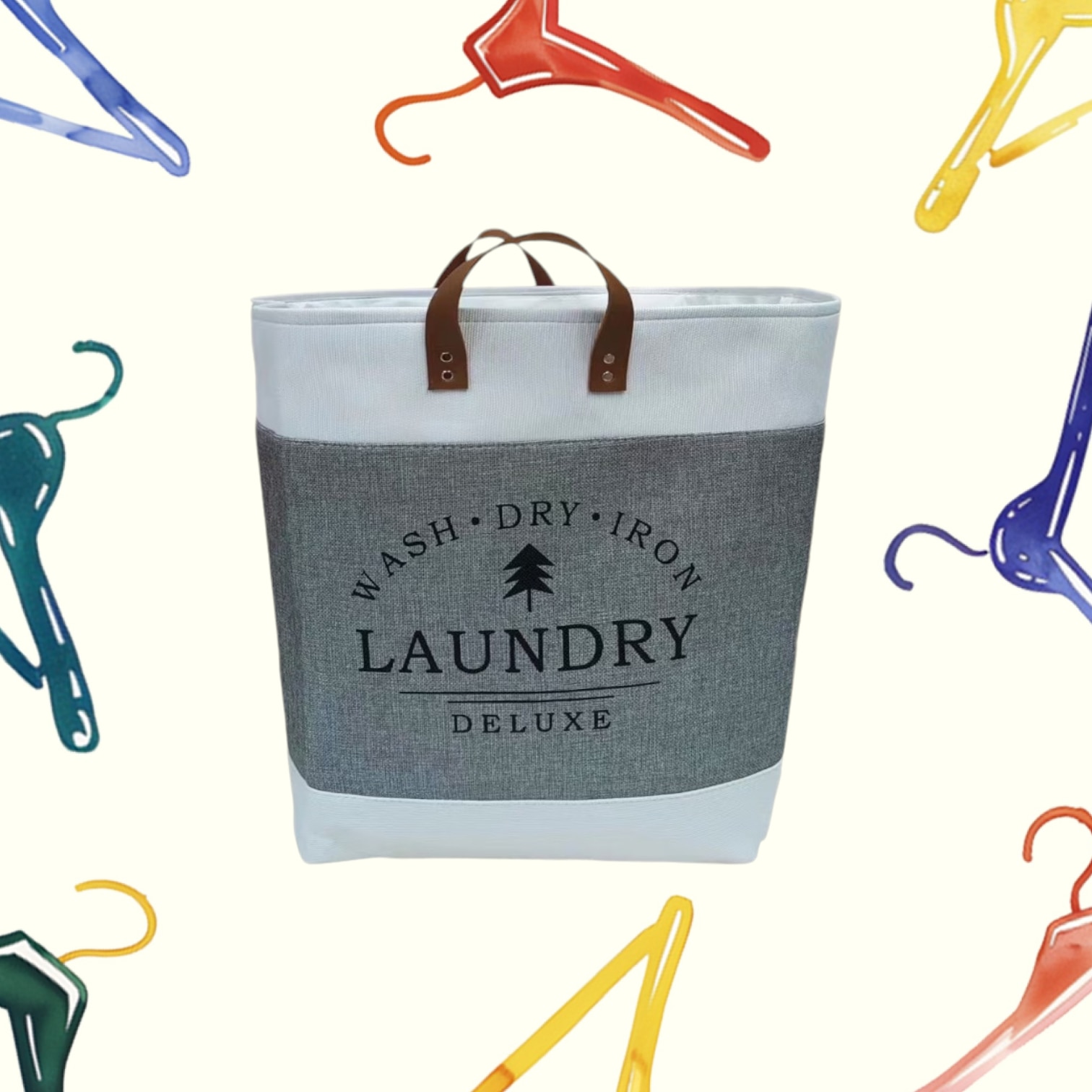 Cos de rufe Inalt AKU Pliabil si Impermeabil, 2 compartimente, cu Manere extinse pentru jucarii sau haine, Gri AK5805