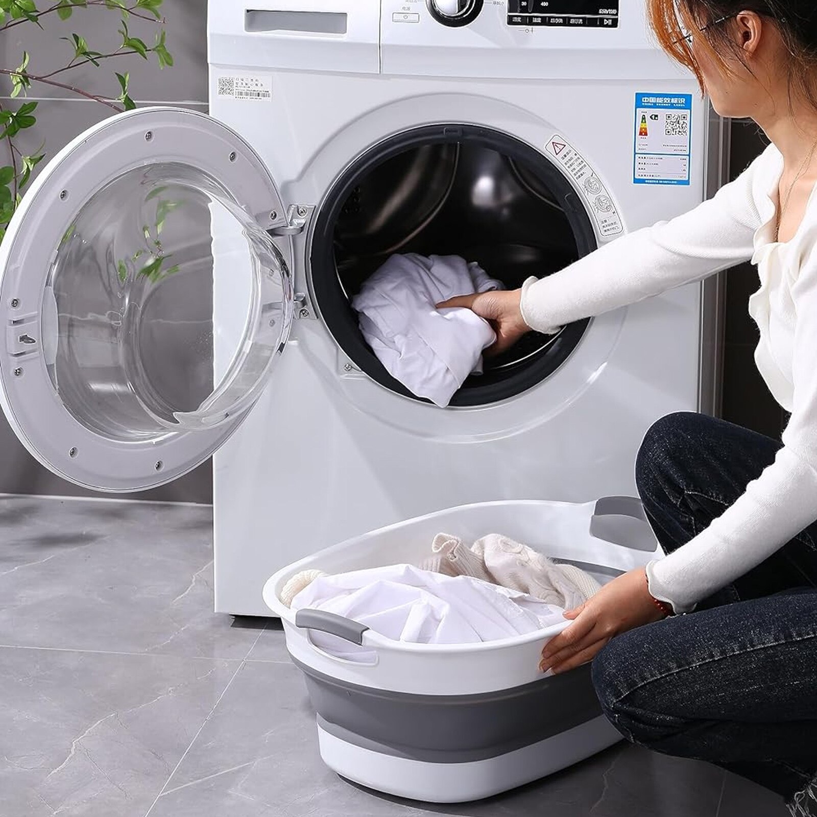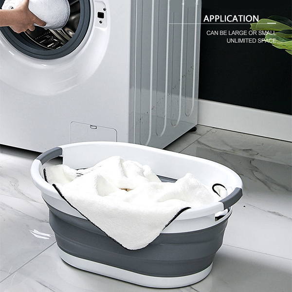 Cos Pentru Rufe Din Pliabil, Hggzeg, 2 Manere, Material de Inalta Calitate, Durabil si Usor de Curata, Economie de spatiu, Ideal pentru rufe, bai, bucatarie, Alb cu Gri, Capacitate 30L, Dimensiuni 53x38x24 cm