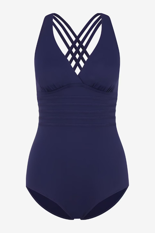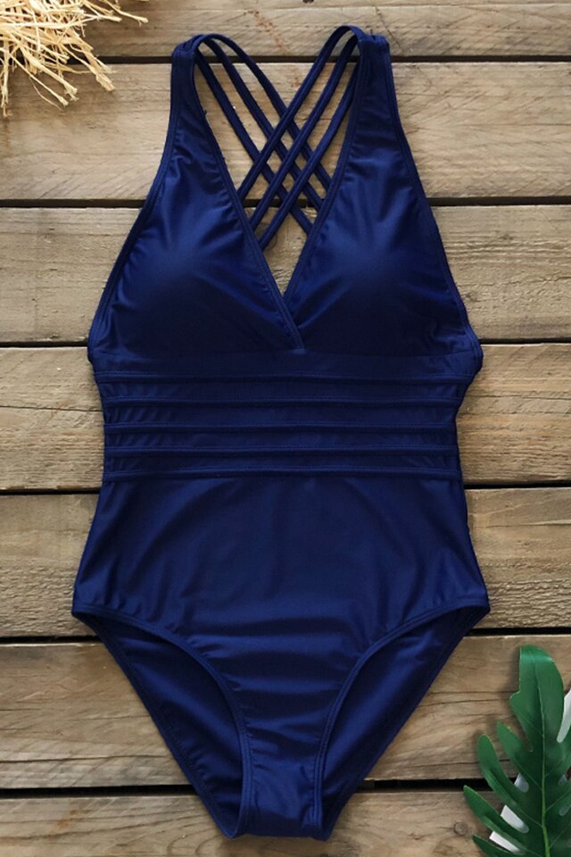 EFAYN.RO - Costum de baie dama, o piesa, model elegant royal, decolteu in V, EFAYN, Albastru
