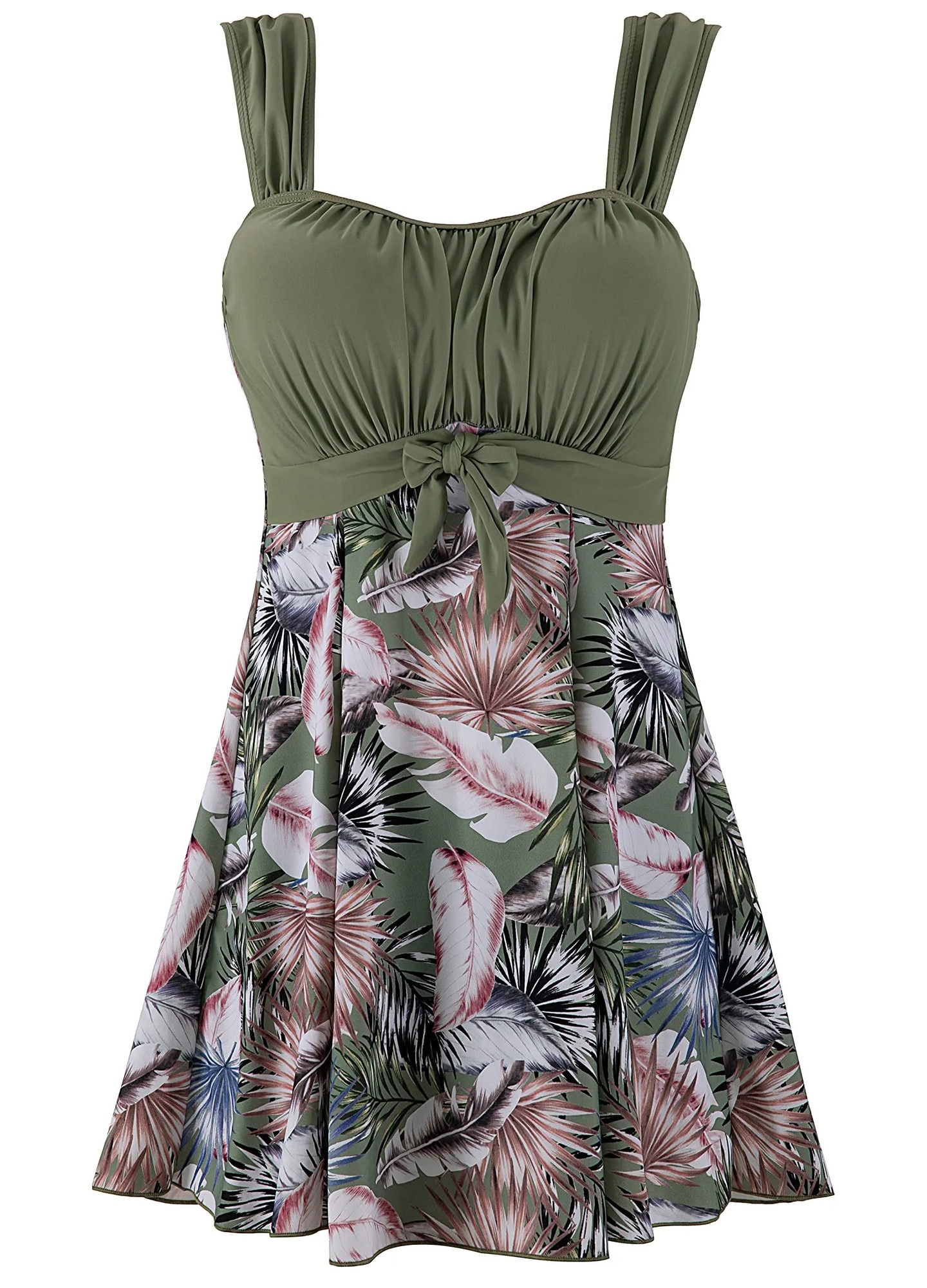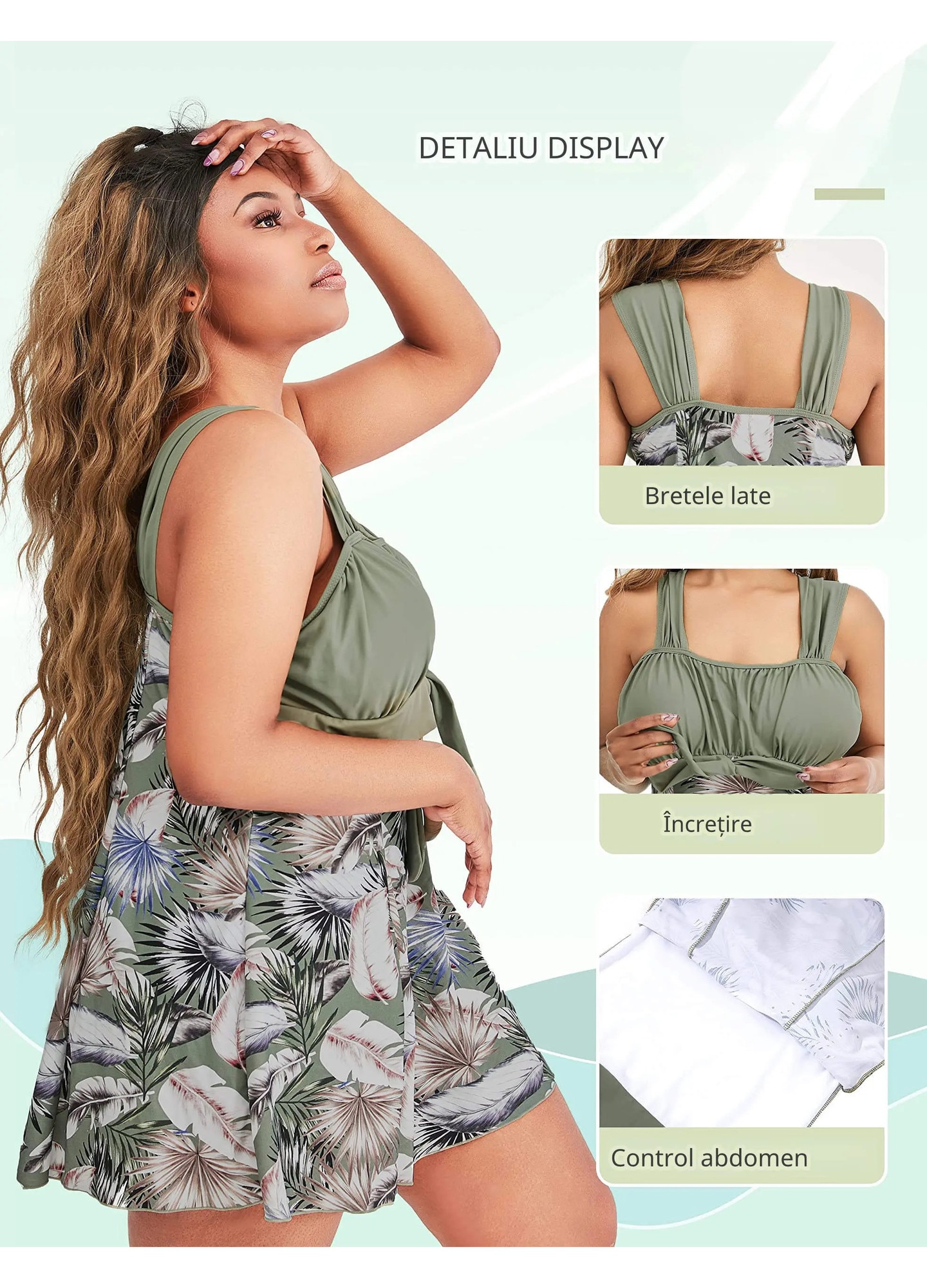 Costum de Baie Femei, Wantdo, Model cu Fusta Integrata, Control Abdomen, Imprimeu Fulgi, Marime 40-42